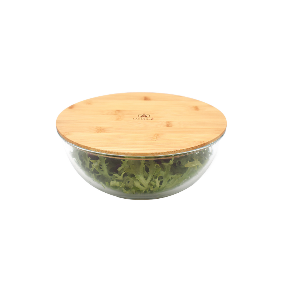 Description : · Saladier 26,6x10,8cm · Contenance: 3500ml - 6 personnes · Fabriqué en verre haute teneur en Borosilicate avec couvercle en bambou · Le couvercle en bambou hermétique conserve la fraîcheur des aliments et préserve les arômes et les saveurs. . Avec l'élastique conçu spécial pour nos plats, ils seront idéals pour transporter où vous voulez pour pique-nique etc Compatibilité four / Températures : Ne passe pas au four. Boîte de conservation: résiste au four à micro-ondes, jusqu'à 300°C. Couvercle en bambou: ne passe pas au four à micro-ondes Boîte de conservation: passe au congélateur. Couvercle en bambou: ne passe pas au congélateur. Boîte de conservation: résiste au lave-vaisselle. Couvercle en bambou: ne passe pas au lave-vaisselle. Garantie : élément(s) pris en charge par la garantie: garantie contre tout vice de fabrication et non résultant d'un usage inapproprié en particulier le non-respect des consignes d'utilisation et passage au lave-vaisselle. élément(s) non couvert(s) par la garantie: - Utilisation non conforme du produit - Usure normale du produit - Non-respect des indications d'entretien - Décoloration du produit suite au lavage dans un lave-vaisselle - Dommages sur le produit causés par des chocs ou des accidents - Stockage inadapté du produit Durée de garantie: 2 ans Conseil d'entretien: Couvercle: Lave à la main. Nettoyer ce produit avant la première utilisation.