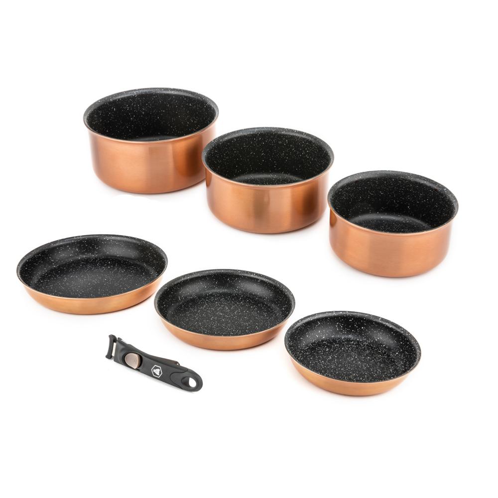 Laguiole - set 7 pièces amovible astuces aluminum "cuivre" anti-adhésif greblon c2 induction