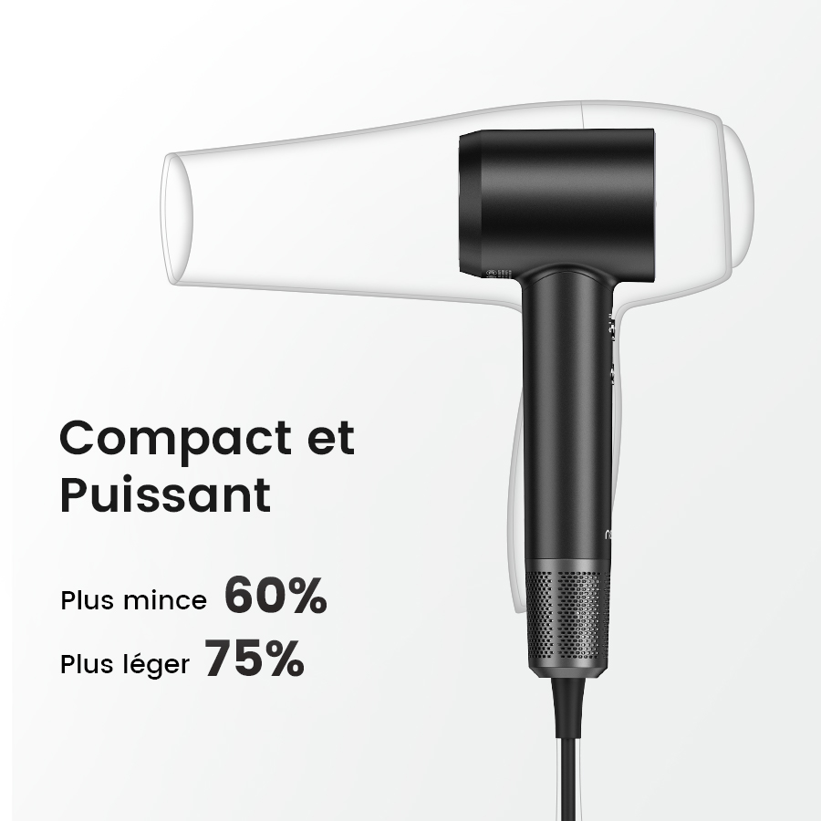 [Simple, sûr et léger]Le sèche-cheveux Laifen pèse seulement 0,9 lb/407g et moins de 9cm de long, petit et portable, idéal pour la maison et le voyage. Le design ergonomique, le bouton simple, la buse magnétique rotative à 360° et le filtre rendent le sèche-cheveux facile à utiliser. La maille du filtre est très serrée et n'aspire pas les cheveux. Il est également sans danger pour les enfants et les femmes enceintes.