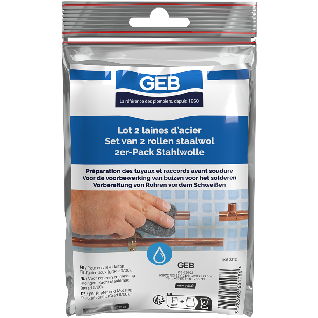 Tampon abrasif pour le nettoyage des pièces à souder ou à coller. La LAINE D’ACIER permet le nettoyage des pièces à souder en métal avant le brasage. Elle s’utilise sur tuyaux et raccords en cuivre, laiton…