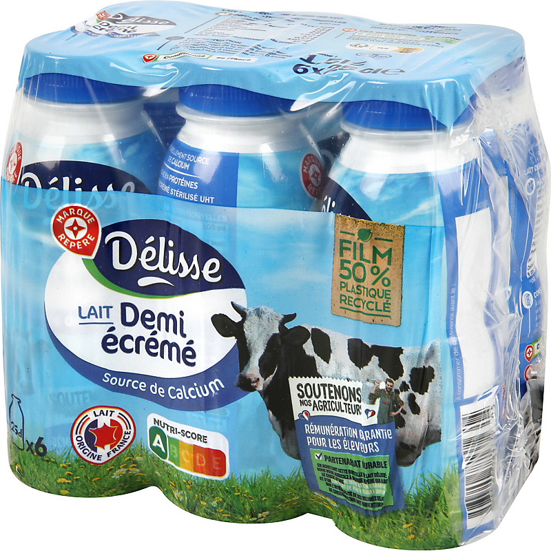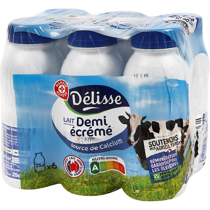 Lait demi écrémé en bouteille - 6 x 25 cl - DELISSE