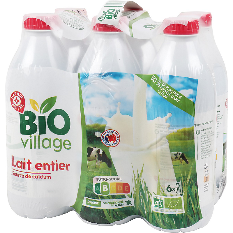 Lait entier stérilisé UHT - issu de l'agriculture biologique BIO VILLAGE