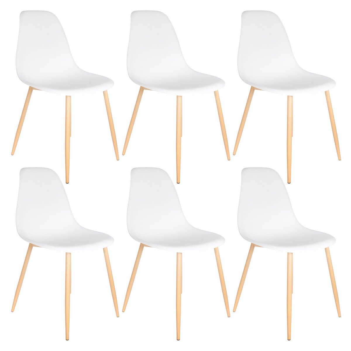 LALY - Lot de 6 Chaises Blanches et Pieds Aspect Bois