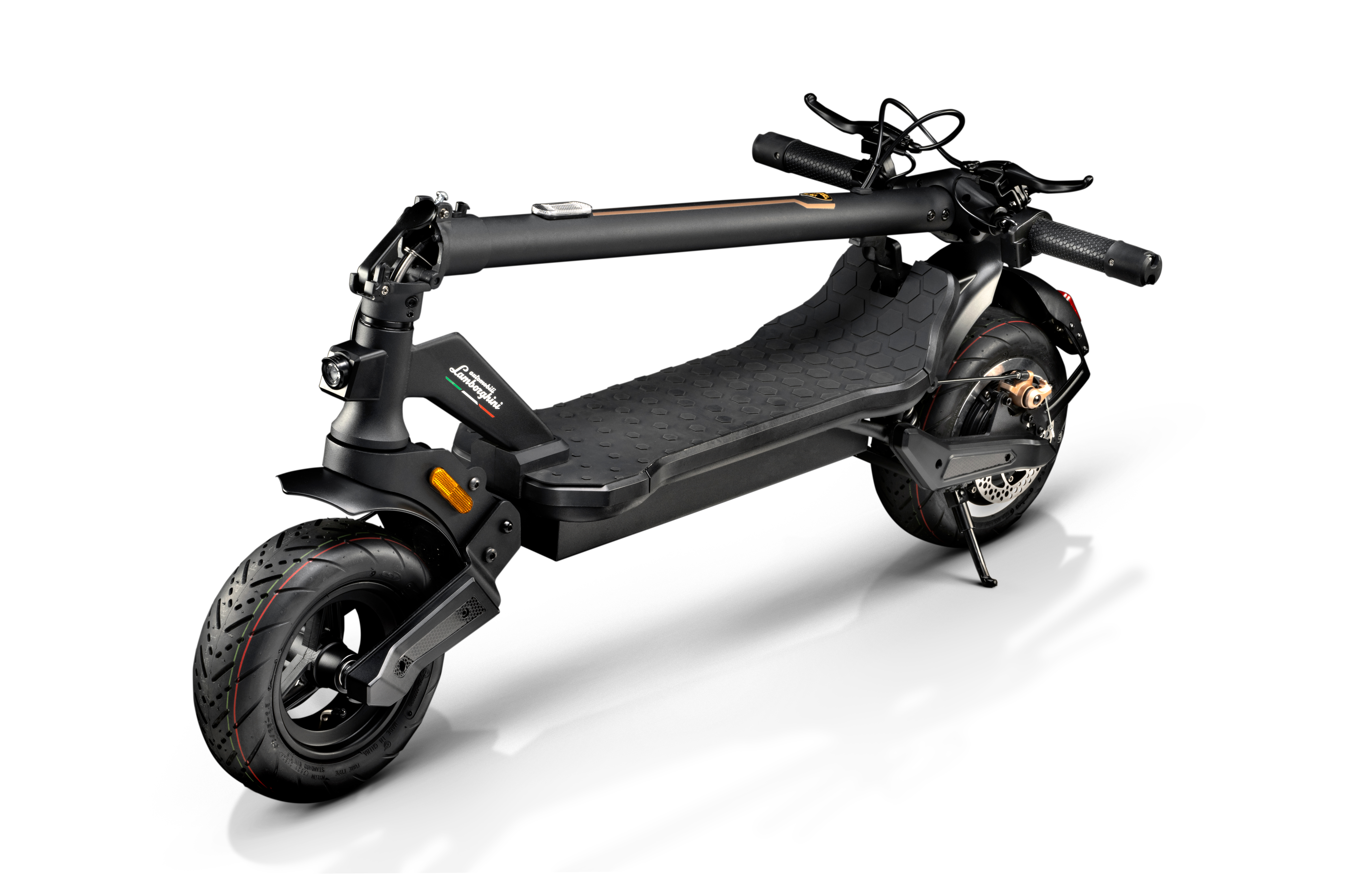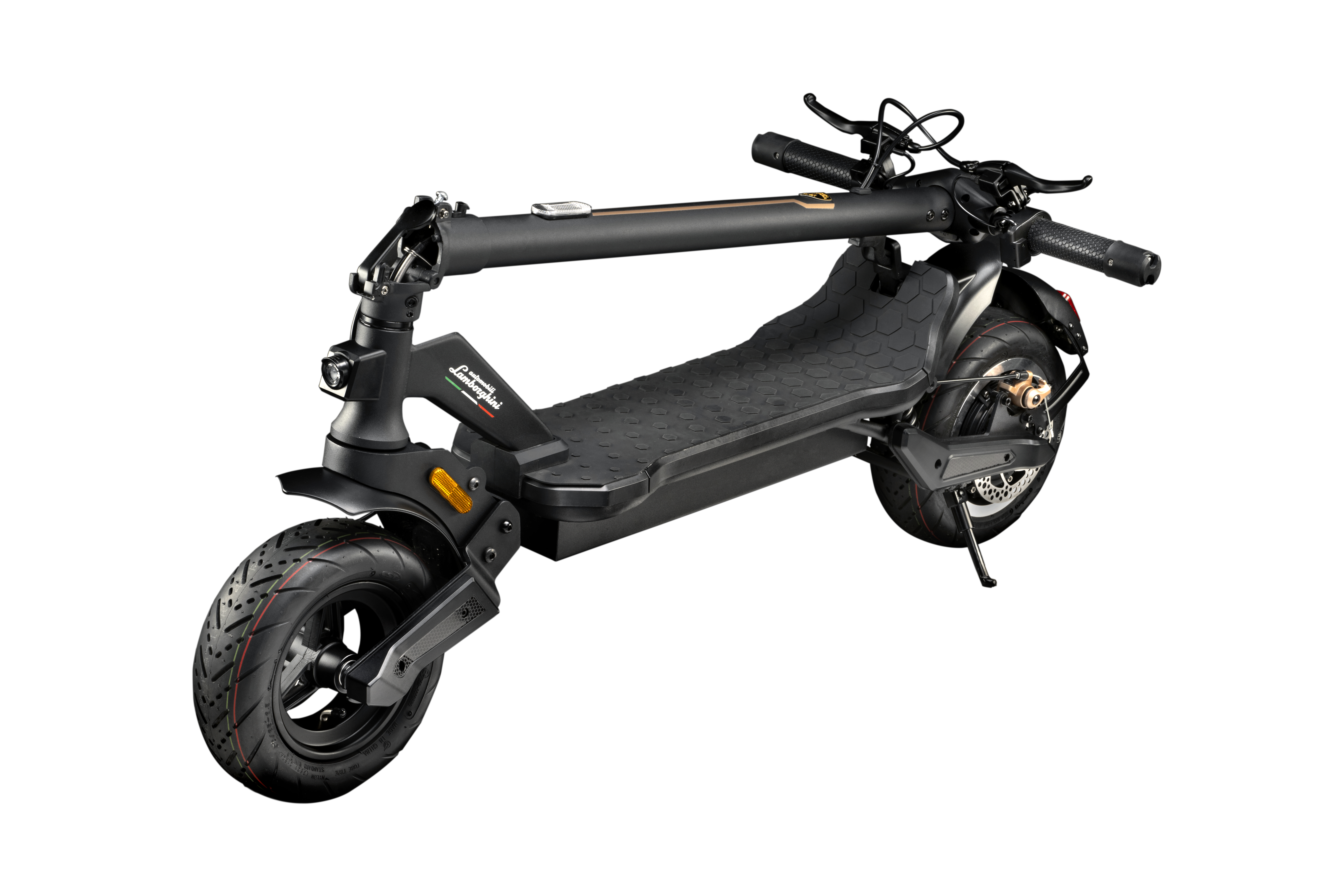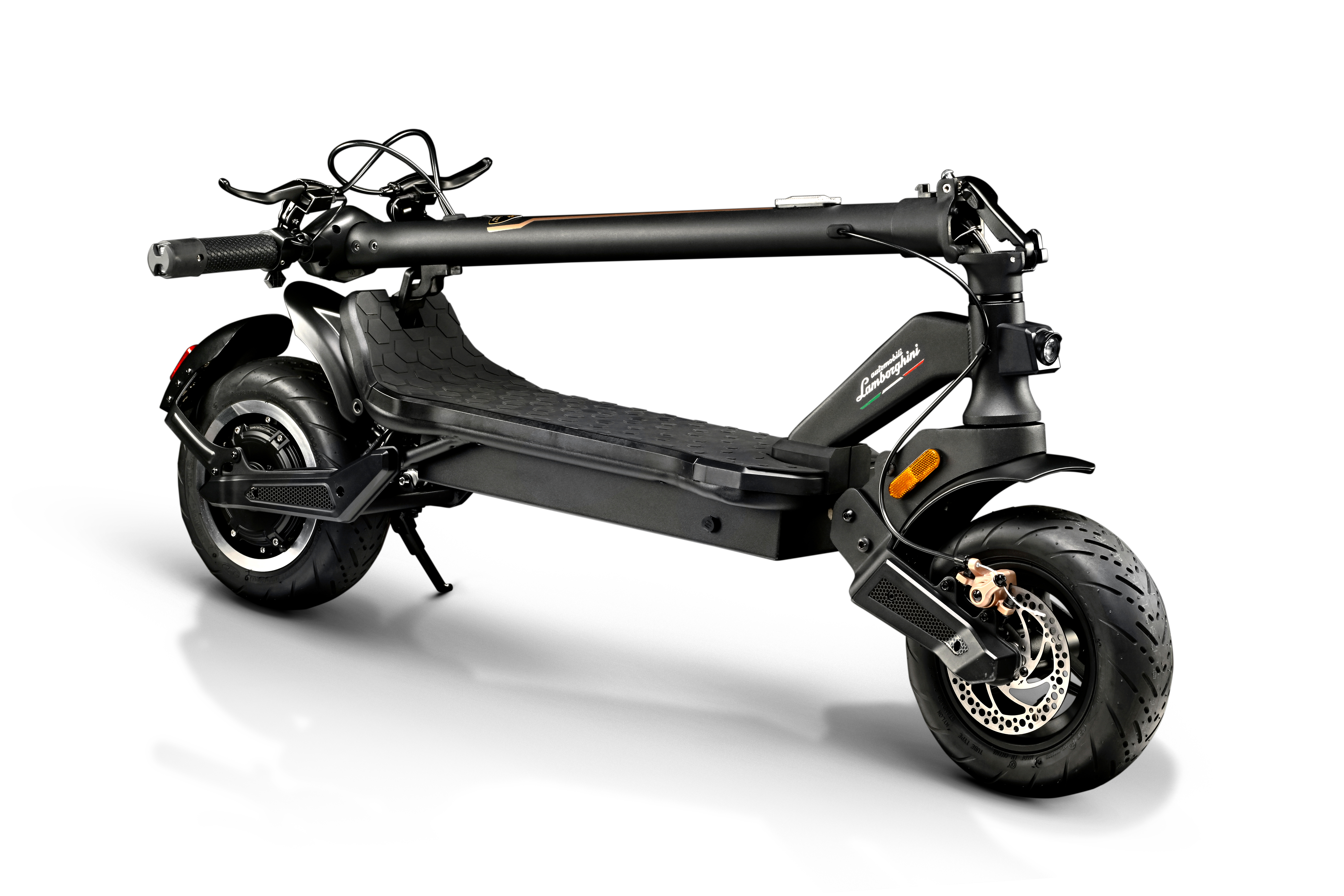 Lamborghini ALext. Type: Scooter classique, Couleur du produit: Noir, Bronze, Vitesse de pointe: 25 km/h. Capacité de la batterie: 12,5 Ah, Puissance du moteur: 500 W, Tension des piles: 48 V. Largeur: 1260 mm, Profondeur: 490 mm, Hauteur: 1350 mm. Capacité de la batterie: 600 Wh. Type d'emballage: Boîte, Largeur du colis: 1330 mm, Profondeur du colis: 290 mm