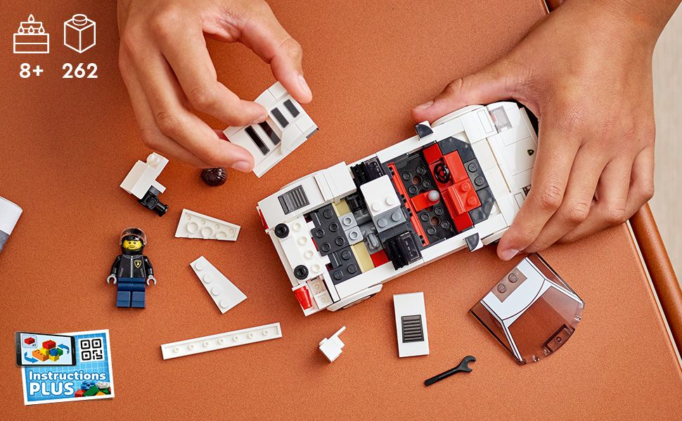 La boîte contient • Réplique LEGO® de la Lamborghini Countach mythique – Un modèle réduit conçu pour les enfants et les adultes passionnés de voitures innovantes hautes performances • Que contient la boîte • – Ce set de construction de voiture présente tout le nécessaire pour construire une Lamborghini Countach blanche, ainsi qu’un pilote Lamborghini avec un casque de protection, une perruque et une clé à molette • Collectionner, jouer et décorer – Construisez votre propre Lamborghini Countach, montrez-la à vos amis et jouez à la course avec d’autres véhicules Speed Champions • Un cadeau pour toutes les occasions – Ce set LEGO® Speed Champions Lamborghini Countach (76908) de 262 pièces peut être offert pour un anniversaire ou toute autre occasion à un enfant ou un passionné de voitures de course de 8 ans et plus • Riche en détails – La Lamborghini Countach inclut un cockpit ouvrant avec 2 sièges et de nombreux détails réalistes. Elle mesure plus de 4 cm de haut, 15 cm de long et 7 cm de large • Ne nécessite pas de piles – Cette incroyable Lamborghini Countach fonctionne grâce à l’imagination des enfants, pour que le bonheur de la course ne s’arrête jamais ! • Instructions de montage numériques interactives – Zoomez, faites pivoter et visualisez le modèle à 360° pendant la construction, grâce à l’appli Instructions de montage LEGO® pour smartphones et tablettes • Explorer un design mythique – Les sets LEGO® Speed Champions permettent aux enfants et aux amateurs de voitures d’explorer certains des véhicules les plus réputés au monde, avec des modèles collector pour jouer et décorer une pièce • La qualité : notre priorité – Les éléments LEGO® sont conformes aux normes industrielles les plus strictes ; ils sont compatibles entre eux et s’assemblent parfaitement • Sécurité garantie – Tous les jouets de construction LEGO® font l’objet de tests rigoureux afin de garantir leur conformité aux normes de sécurité les plus élevées