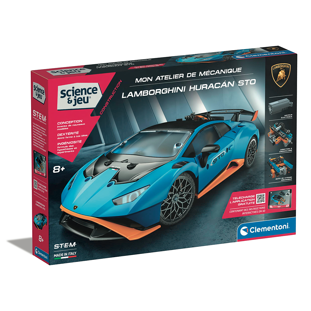 • Pour tous les passionnés de Lamborghini, une maquette à assembler pour filer à toute vitesse vers des courses effrénées ! • Avec les nombreux composants inclus, les enfants pourront s’amuser à construire une maquette réaliste d'une voiture motorisée Lamborghini. • Avec les roues qui braquent et une carrosserie au design attrayant, découvrir les secrets de la mécanique et de l’ingénierie sera encore plus amusant. • L’application gratuite guide l’enfant dans les différentes phases d’assemblage grâce aux instructions en 3D. • Un jeu pensé pour stimuler les capacités manuelles et la créativité.