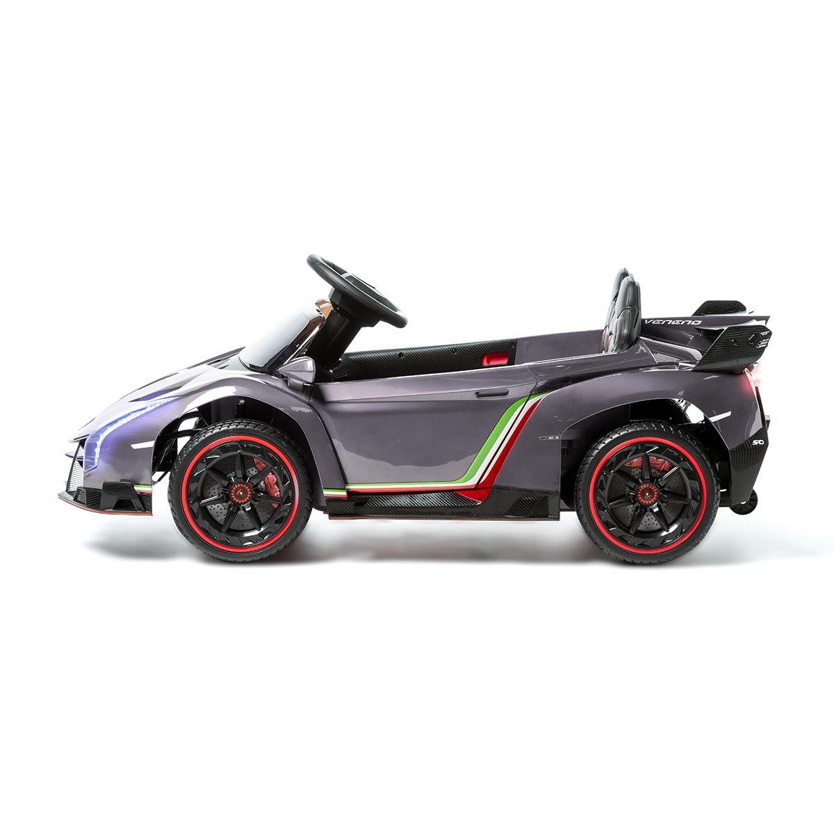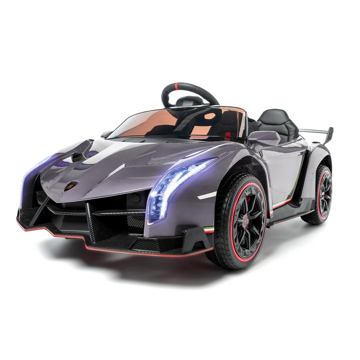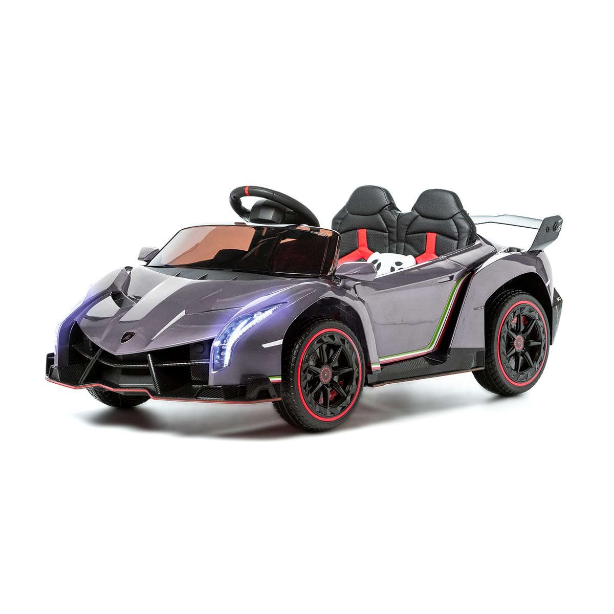 La Lamborghini Veneno pour enfants a un design impressionnant et des fonctionnalités haut de gamme, avec lesquelles les enfants se sentiront comme de vrais pilotes de course. Cette voiture à batterie pour enfants est dotée de 4 moteurs et d'une transmission intégrale, ce qui lui permet de rouler facilement sur presque tous les terrains.