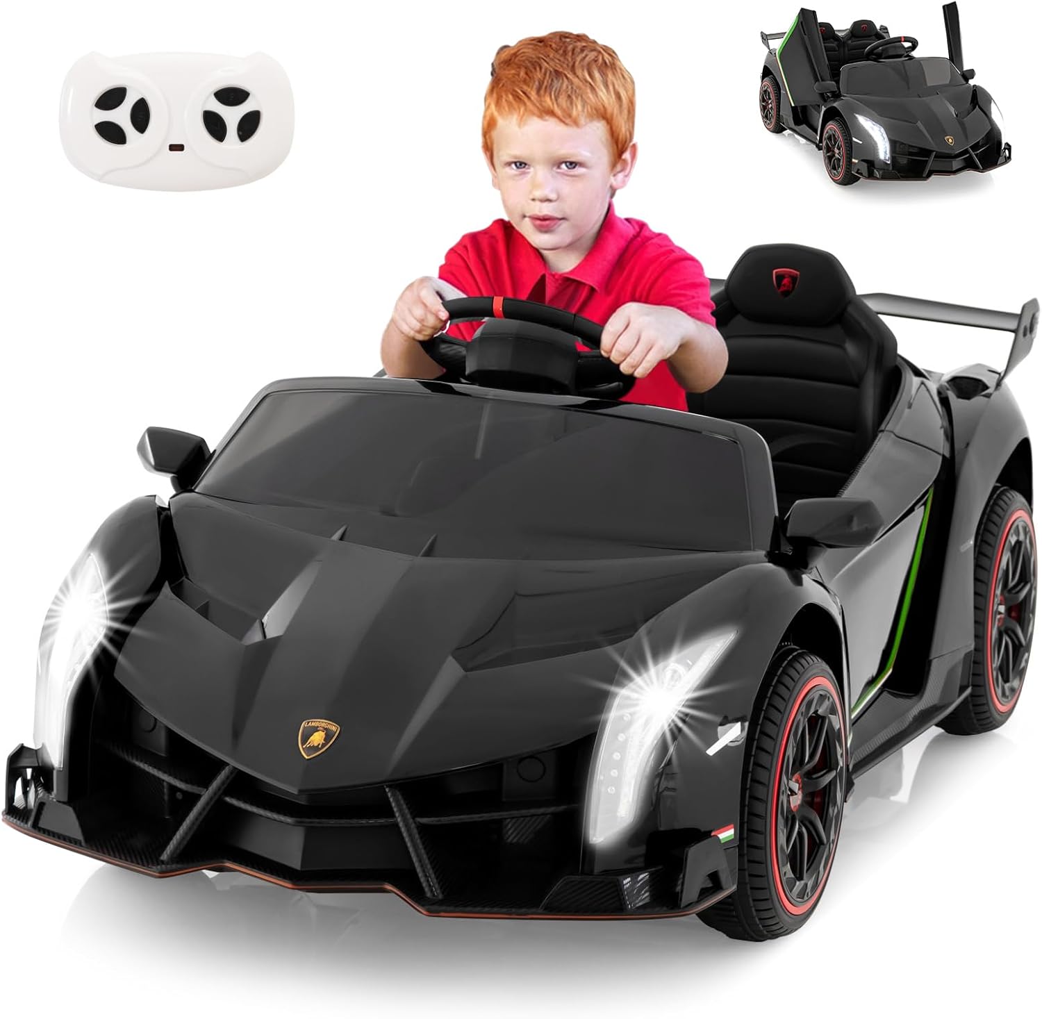 Lamborghini voiture electrique enfants 12v, voiture electrique enfants 1 place avec télécommande noir