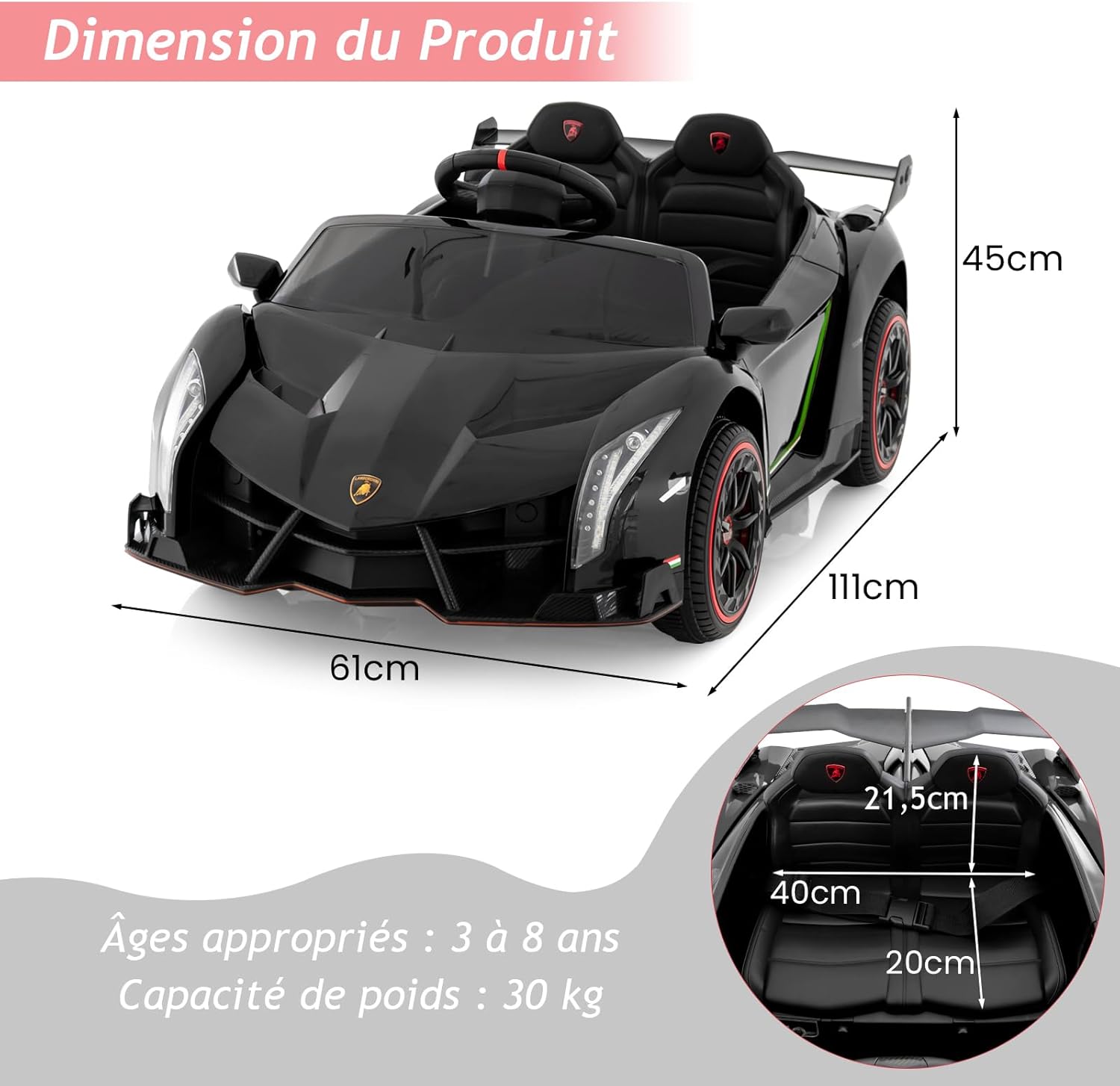 | Libellé | Lamborghini voiture electrique enfants 12v, voiture electrique enfants 1 place avec télécommande noir |