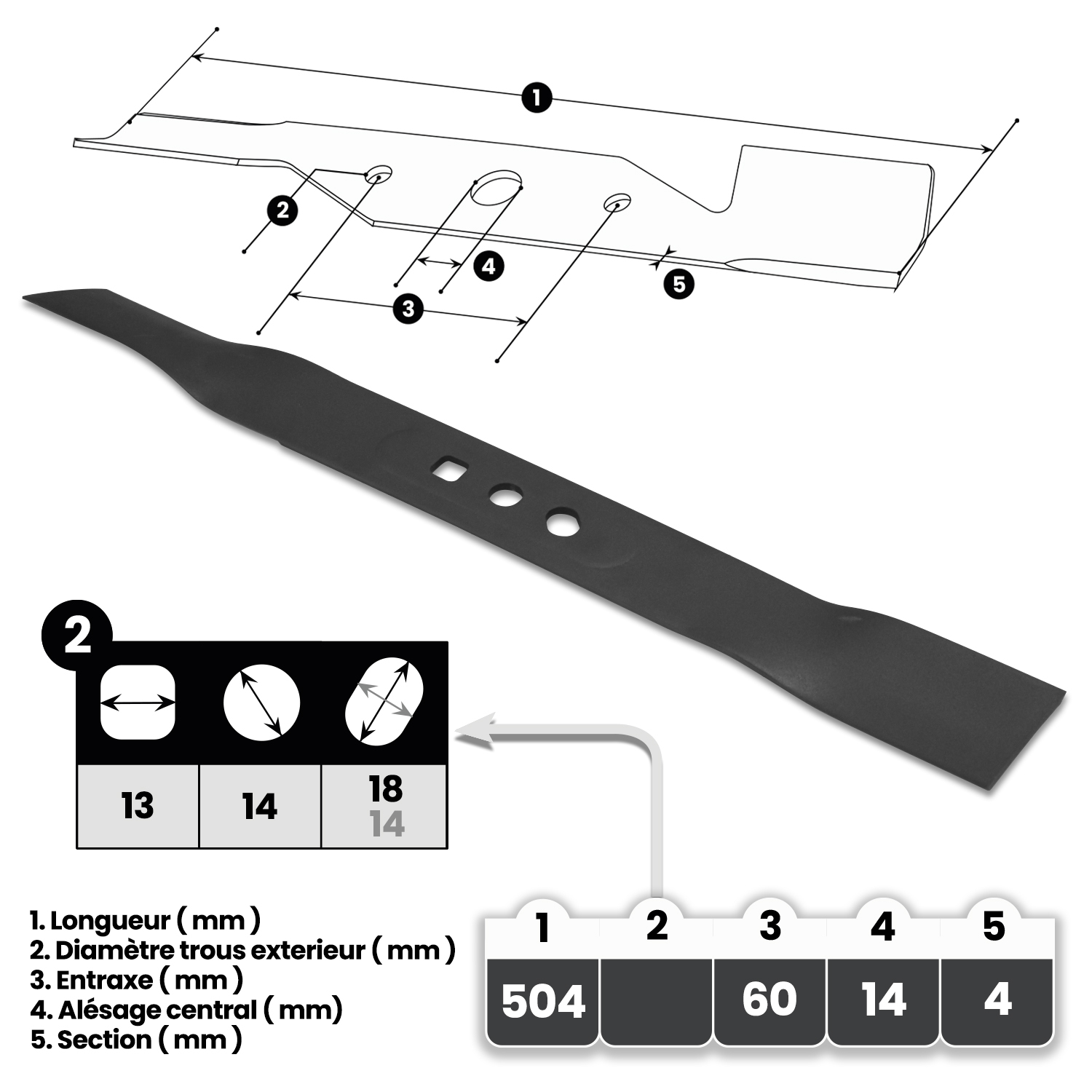 | Libellé | Lame de rechange pour tondeuse thermique 51cm |