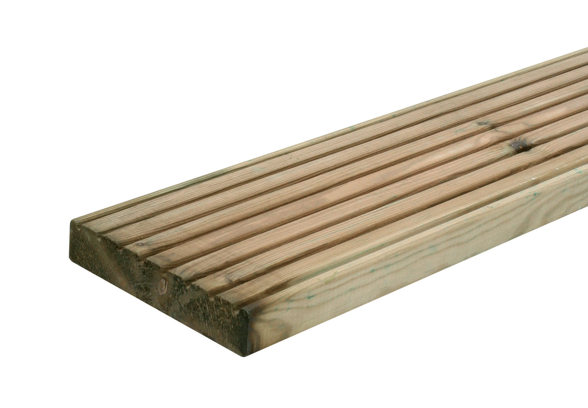 Lame de terrasse en bois MARCELLO, de la marque française Forest-Style, pour toutes vos constructions extérieures, dont vos projets DIY au jardin. Construisez une jolie terrasse intemporelle, aux teintes naturelles, avec la lame bois MARCELLO. Profitez d’une face lisse et d’une face rainurée (grosses rainures), suivant votre design favori. Planche en bois traitée autoclave classe 3 : utile pour divers projets DIY jardin (DIY table, banc, abri bûches, panneau, clôture, jardinière…). Planche terrasse résistante : épaisseur de 2,8 cm. Projetez-vous avec la lame terrasse MARCELLO pour votre projet terrasse en bois de surface moyenne (moins de 20 m2), avec sa largeur de 14,5 cm. Elle est idéale en milieu peu humide (terrasse sur pilotis, terrasse couverte…). Une belle terrasse pour votre loggia ou un coin repas des plus agréables, tout est possible à vos dimensions, même créer des courbes ! Lame en bois MARCELLO de Forest-Style également disponible en coloris marron, pour un effet encore plus authentique, ou en 360 cm de longueur. Pour la pose de la terrasse, utilisez des lambourdes Forest-Style traitées autoclave classe 4. Protégez les zones de découpe de vos éléments traités autoclave, en ajoutant du produit de coupe sur les extrémités. Longueur : 240 cm. Largeur : 14,5 cm. Epaisseur : 2,8 cm. La lame de terrasse bois MARCELLO, fabriquée en pin sylvestre, est certifiée FSC®/PEFC car le bois sélectionné par la marque Forest-Style est issu de forêts européennes gérées de façon responsable. Bois traité autoclave classe 3 (couleur : autoclave vert), traitement garanti 3 ans contre les champignons (dont pourrissement) et les organismes xylophages.