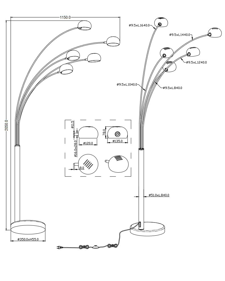 | Libellé | Lampadaire design cinq doigts |
