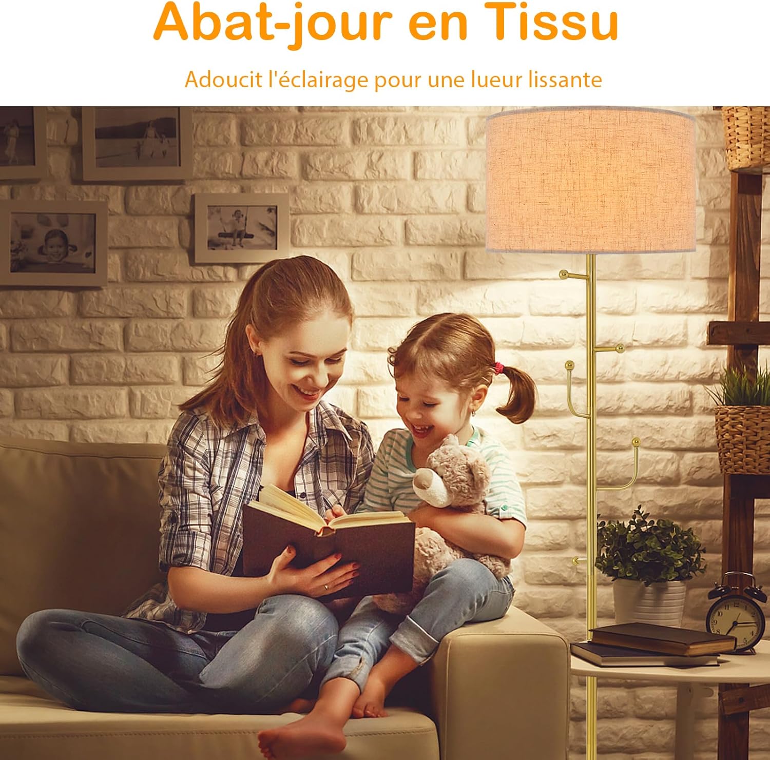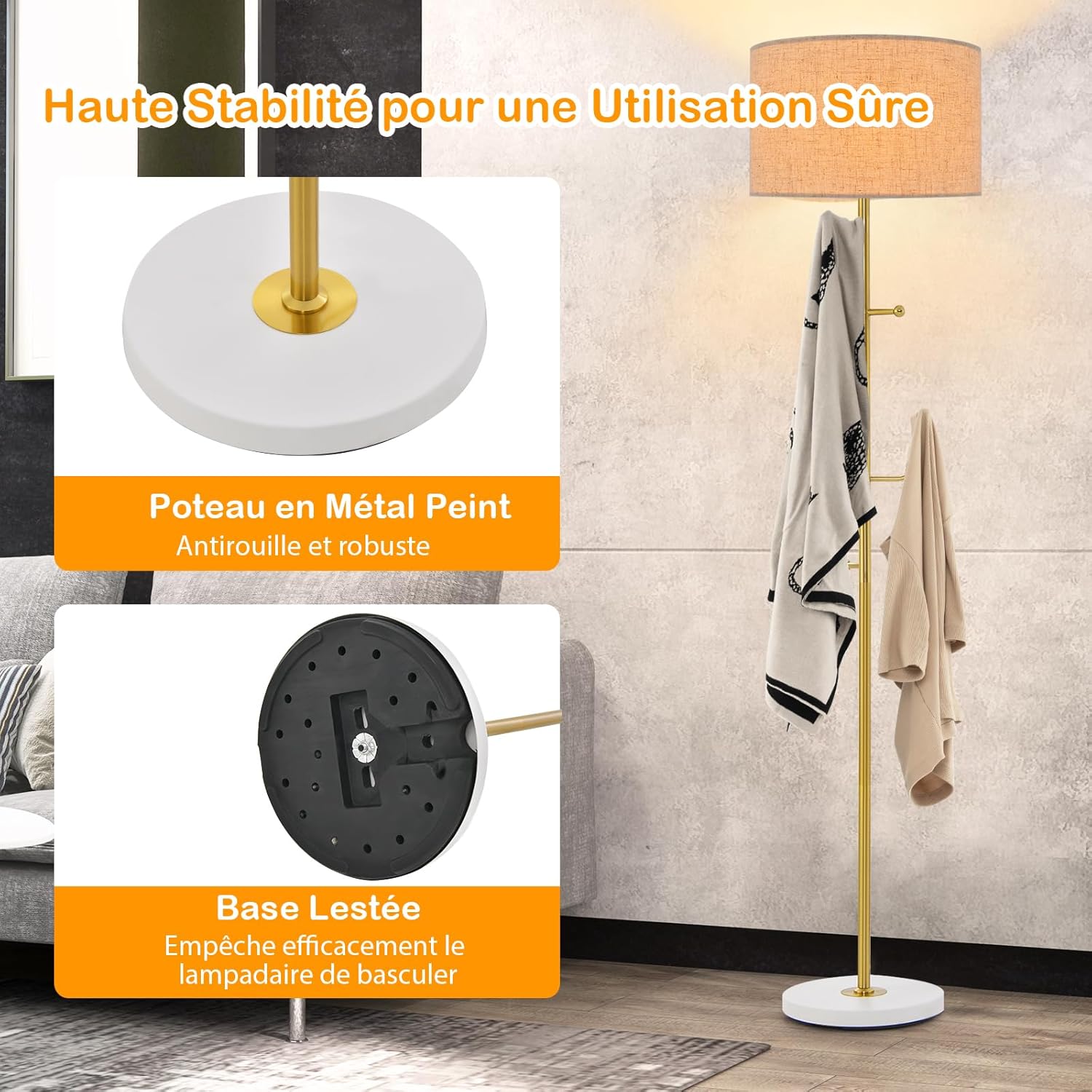 | Libellé | Lampadaire porte-manteau 2 en 1, lampadaire en métal avec abat-jour en tissu, interrupteur au pied |