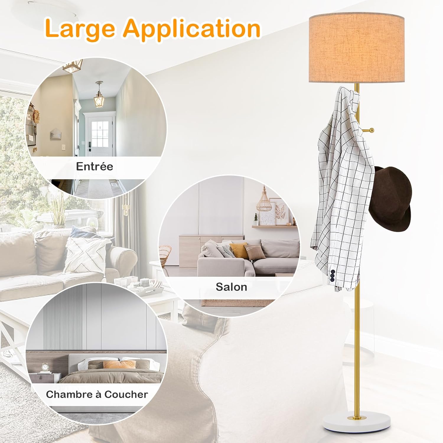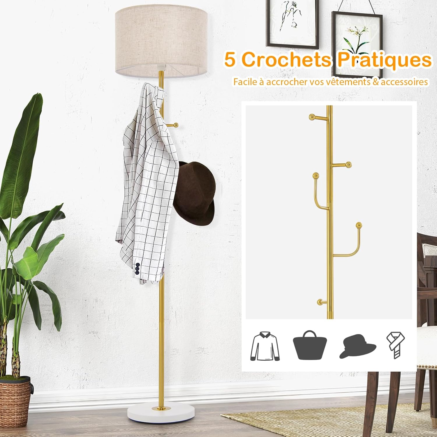 - Conception pratique 2 en 1 : Avec des crochets de suspension en une seule pièce, ce lampadaire peut être utilisé comme lampe ou porte-manteau. Ses 5 crochets sont parfaits pour suspendre chapeaux, écharpes, vêtements, sacs et bien plus encore.