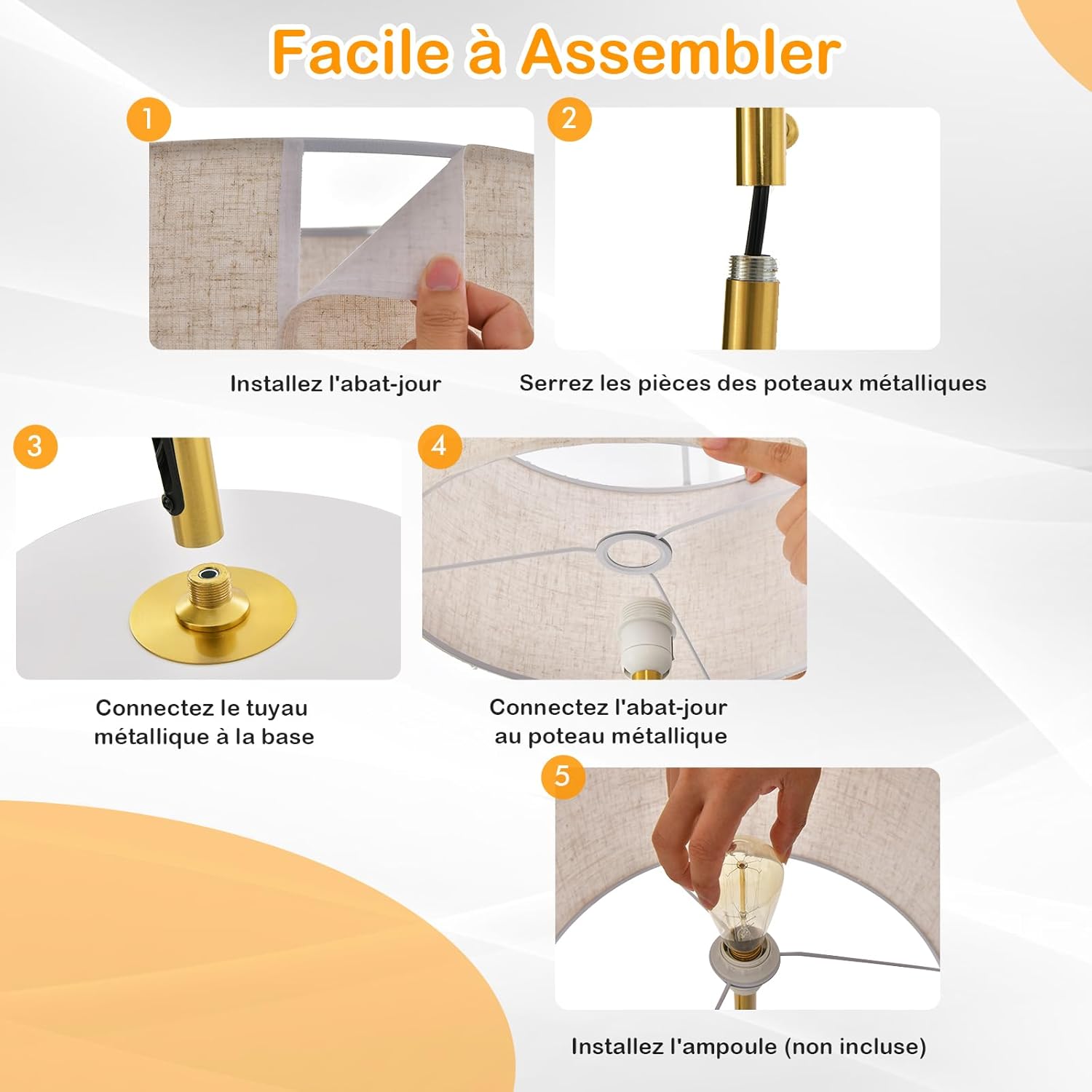 - Facile à assembler : Livré avec des instructions détaillées, ce lampadaire autoportant est facile à assembler. Installez simplement l'abat-jour, serrez les pièces du poteau métallique, connectez le tuyau métallique à la base, connectez l'abat-jour au poteau métallique, installez l'ampoule (non incluse).