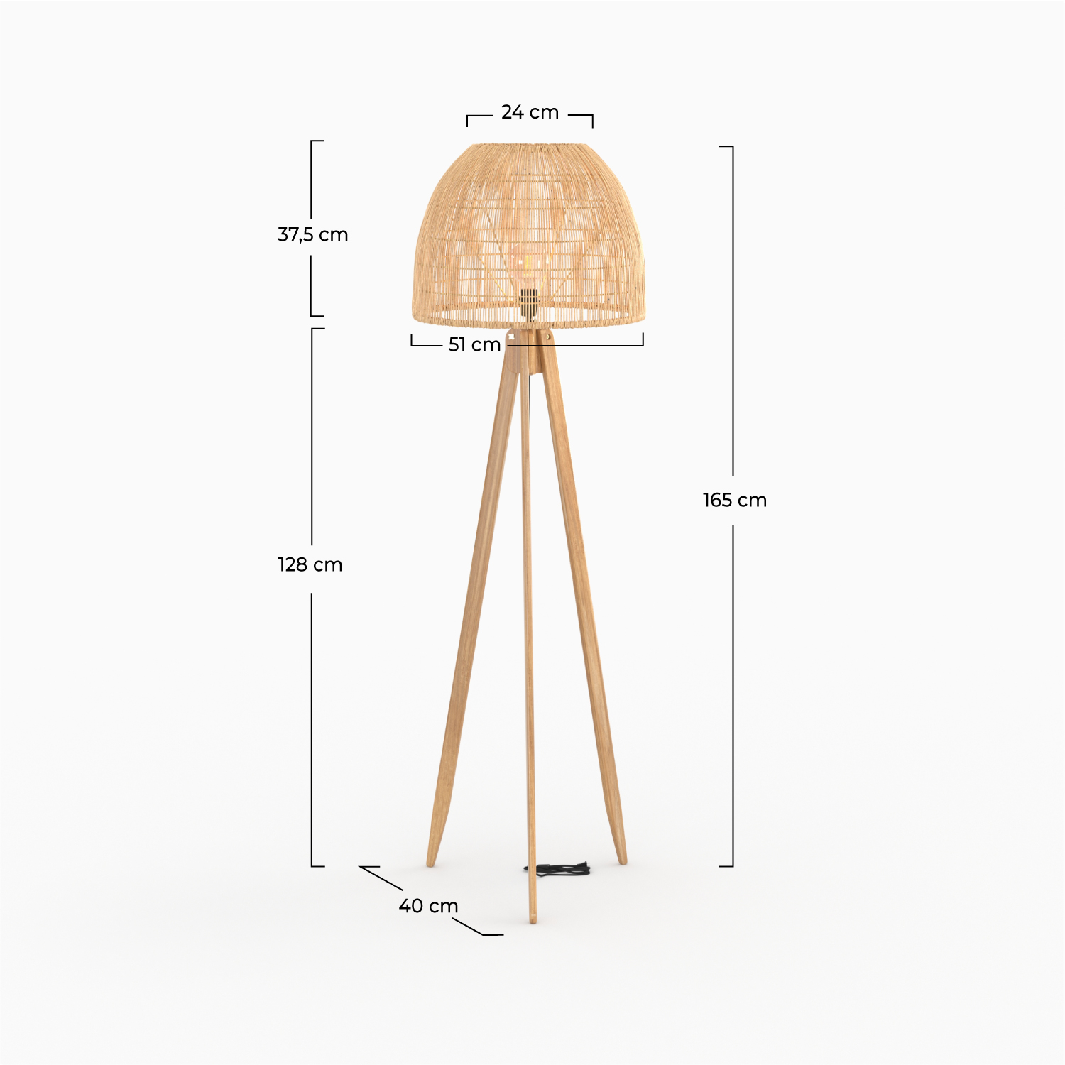 Lampadaire trépied en rotin et bois de teck massif-Corte