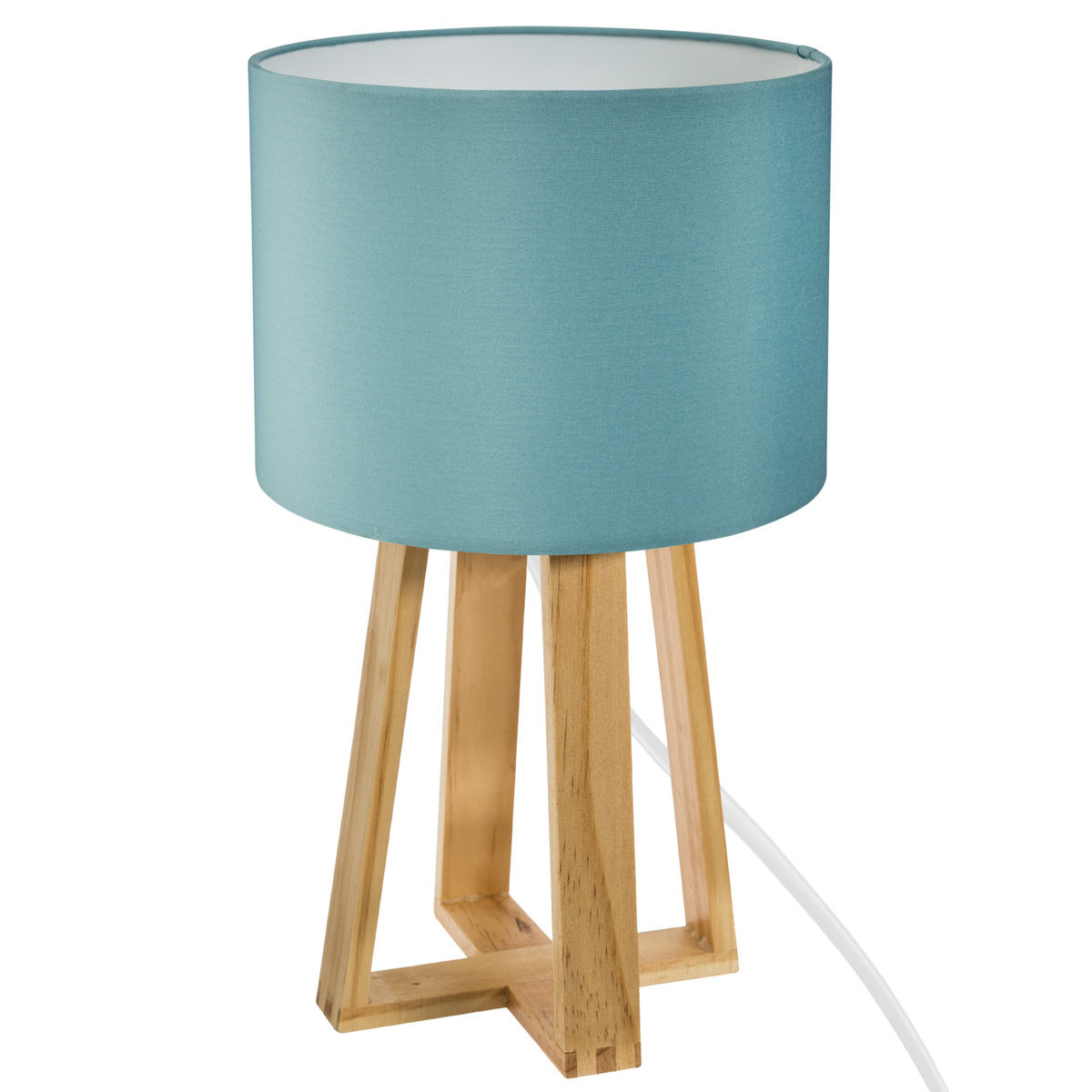 Lampe à Poser Pied en Bois et Abat-jour Bleu H 34.5 cm --