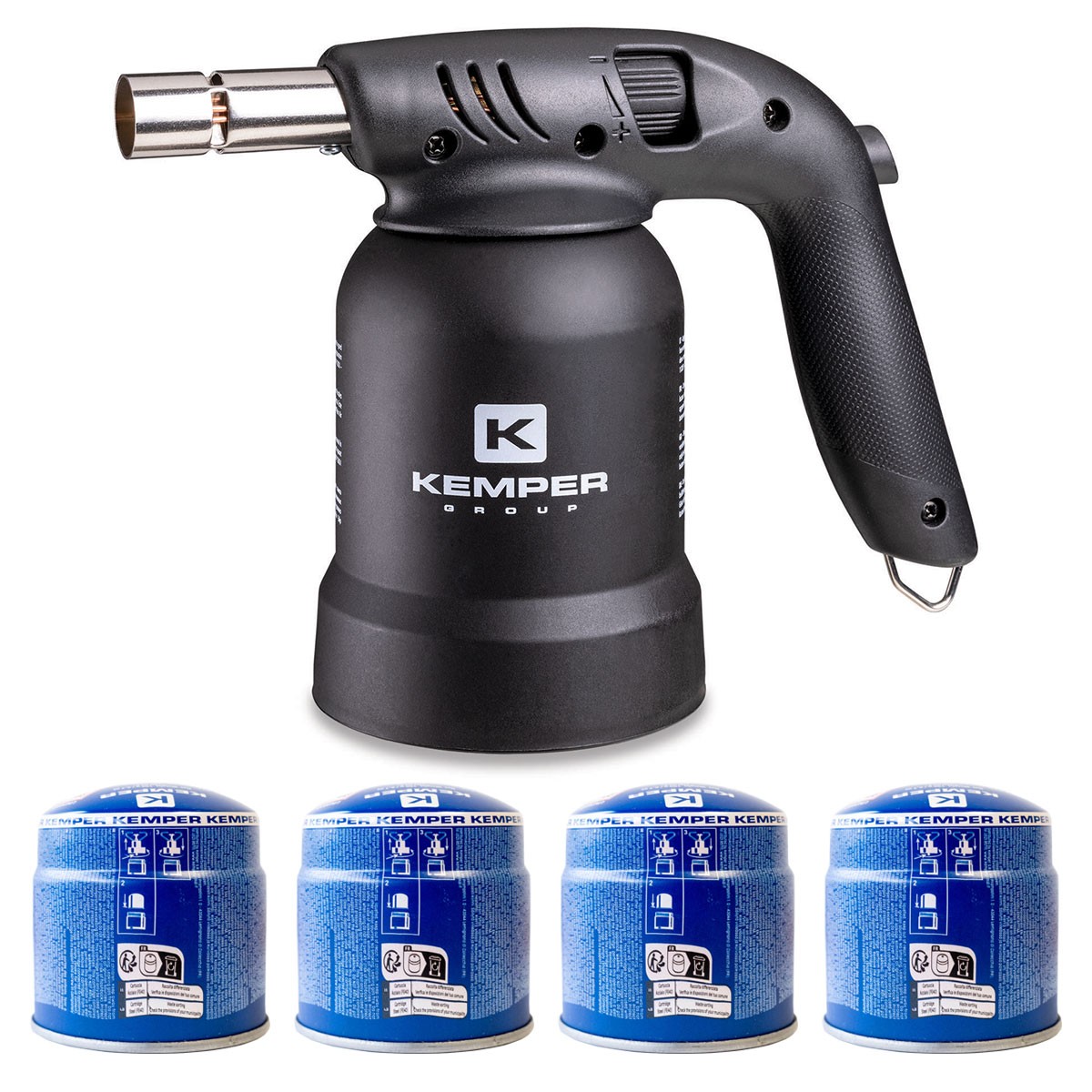 Ce chalumeau à flamme Kemper est compatible avec les cartouches de gaz à percer universelles norme EN417.