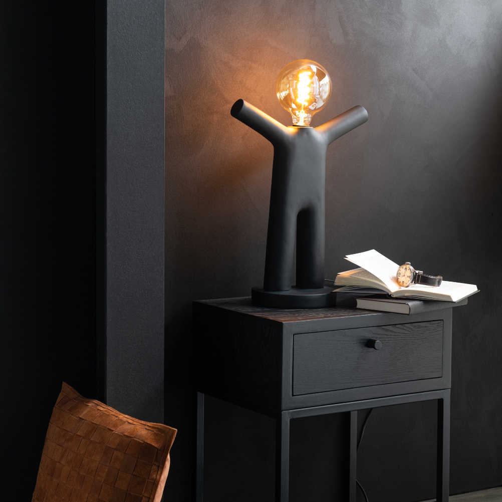 Lampe Bonhomme en Résine Noire En résine Hauteur 45 cm x largeur 34 cm x Profondeur 18 cm 220 - 240 V - 50 Hz - E27, Max. 60W Prise européenne
