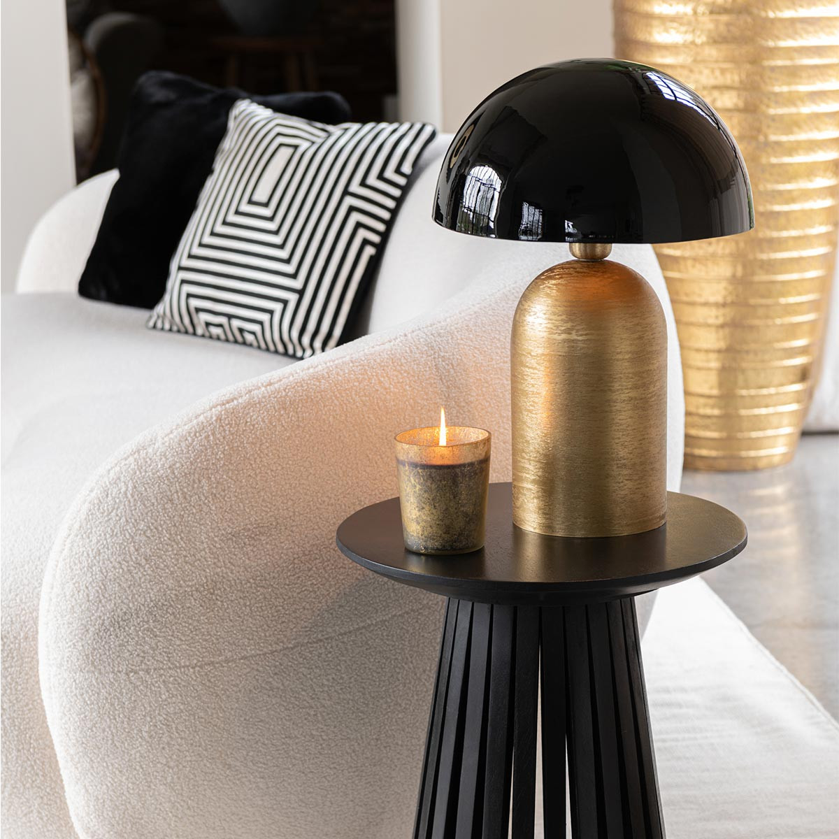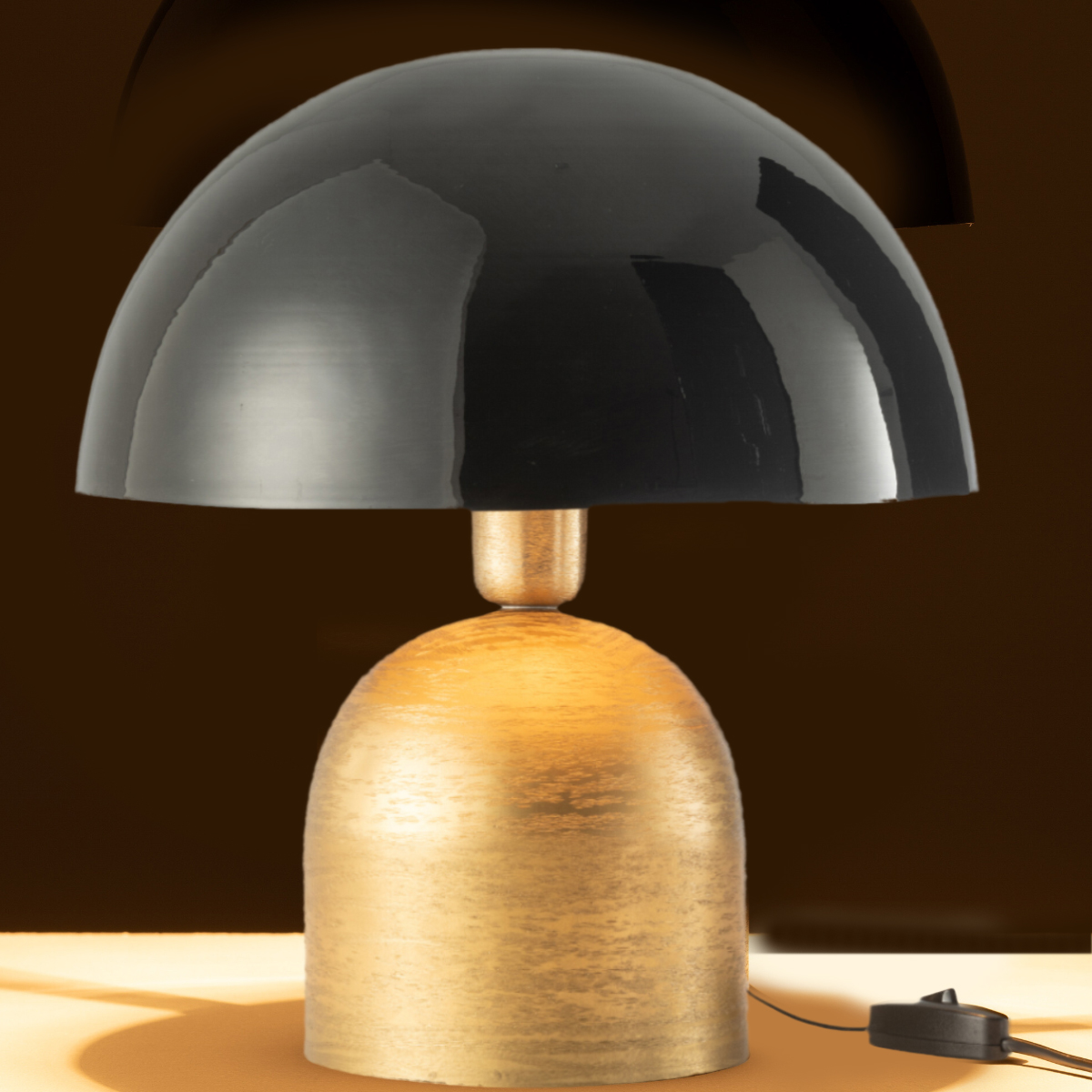 Lampe champignon noir et or Matière : métal Dimensions : Hauteur 36 cm - Diamètre 31 cm Puissance maximale : 25 W Longueur du câble : 200 cm Pour ampoule E27 non incluse Prise européenne Ajoutez une touche de modernité et d'élégance à votre intérieur avec cette lampe champignon en métal noir et or. Sa silhouette arrondie et ses finitions dorées en font une pièce à la fois fonctionnelle et décorative. Parfaite pour illuminer un coin lecture ou pour créer une ambiance chaleureuse dans n'importe quelle pièce.