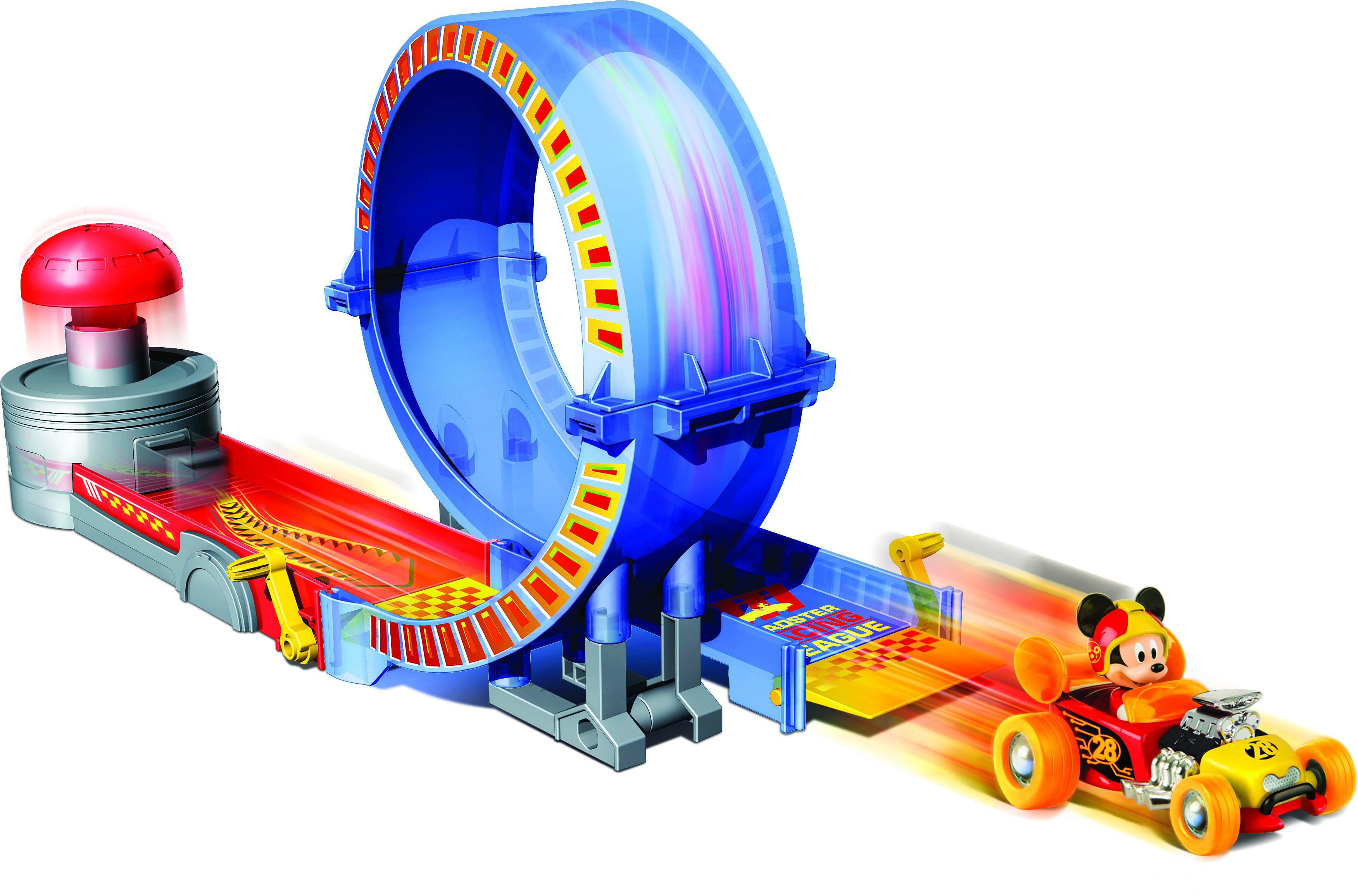 Prêt, feu...Partez ! Amuse-toi avec ce lanceur avec looping Mickey et et ses amis Top Départ. Appuie sur le bouton et réalise un spectaculaire tour à 360° !