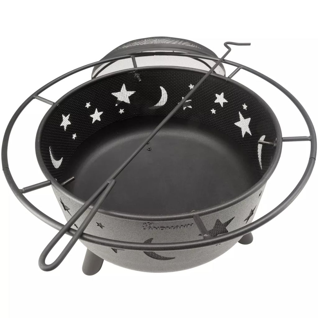 Le brasero dispose de 3 pieds lourds en acier. Le brasero dispose également d'un couvercle maillé, qui vous offre non seulement une vue sur le crépitement du feu, mais également permet de vous faire garder éloigné des étincelles volantes et des cendres.