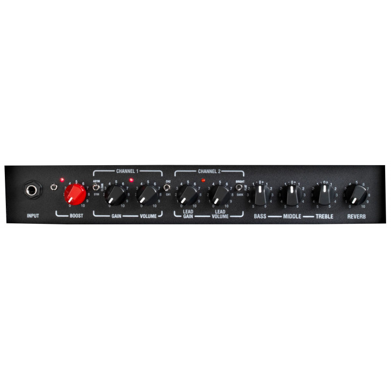 Ampli DUALTOP, 60W, 2 canaux avec Gain et Volume, canal 1 avec modes clean/rhythm/lead, canal 2 avec voicing bright/natural/dark, égalisation passive 3 bandes, switch Boost, switch de sélection de canal, réverb intégrée (BCC SECRETPATH), sortie DI (XLR mâle symétrique) avec simulation de haut-parleur analogique commutable, sortie HP (8-16 ohms), boucle d'effets de haute qualité isolée par transformateur, entrée auxiliaire (mini-jack), sortie casque (mini-jack) avec émulation, alimentation 24V fournie, 2 modes (High et Low <1W), dimensions: 377 x 184 x 178 mm, poids: 4.66 kg.