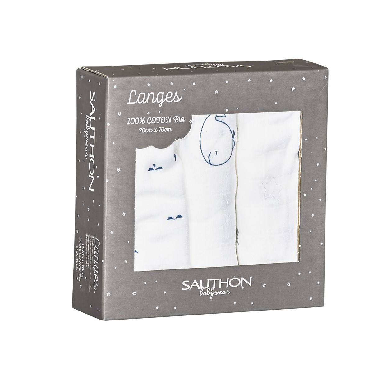 Lot de 3 Langes 70X70 cm Blue Baleine Indispensable à l'arrivée d'un bébé, les langes Sauthon sont multifonctions et peuvent servir aussi bien de doudou, que de couverture ou de protection en vue du change. 100% Mousseline de coton 70x70 cm - Lavage à 30 °C maximum, programme normal. Ne pas utiliser d'agent de blanchiment pour traiter cet article. Il devrait être lavé uniquement avec des produits prévus pour le linge de couleur ou le linge délicat. Ne pas sécher au sèche-linge. Ne pas repasser à très haute température (c'est-à-dire 110 °C maximum) et repasser de préférence sans vapeur. Ne pas nettoyer à sec.