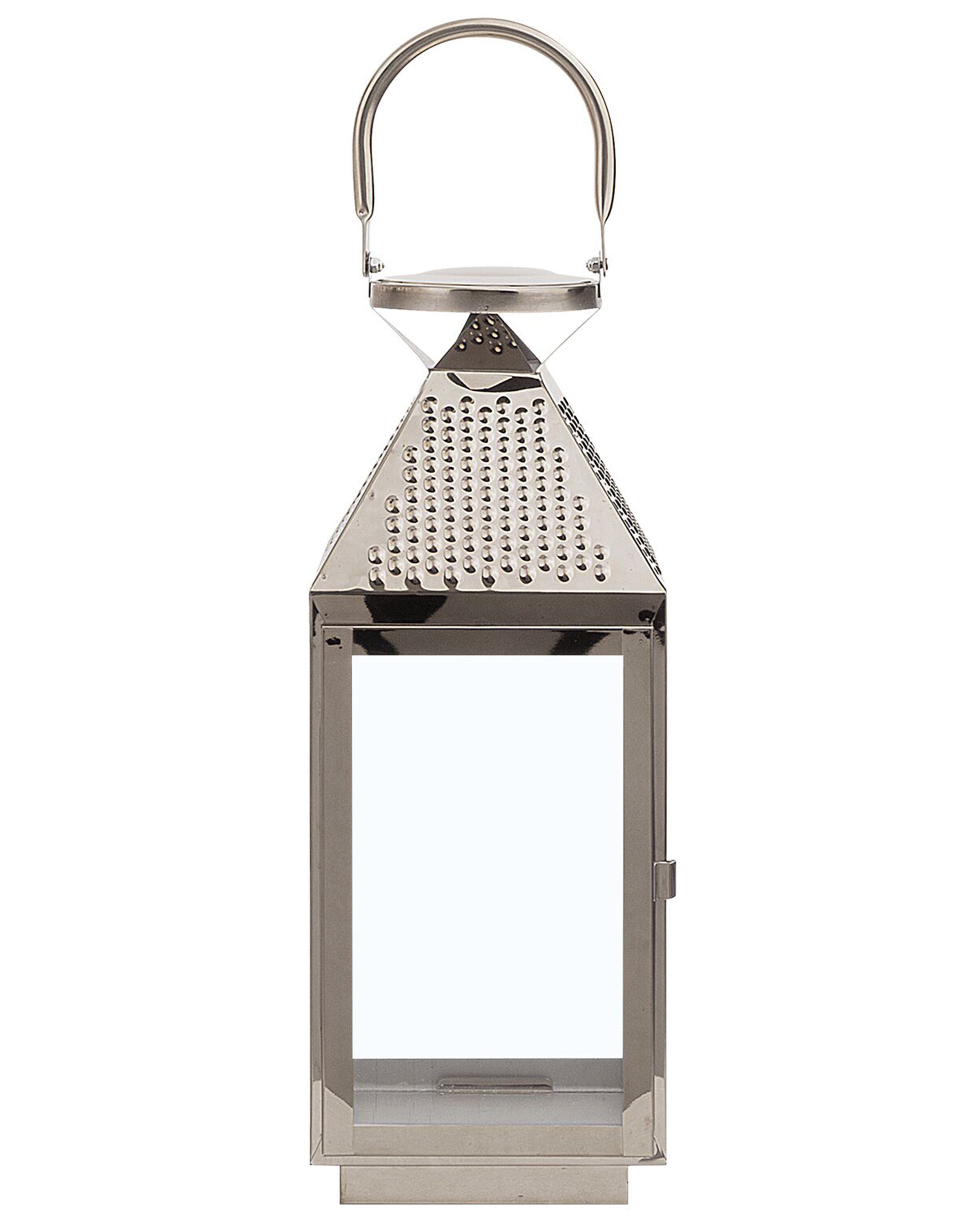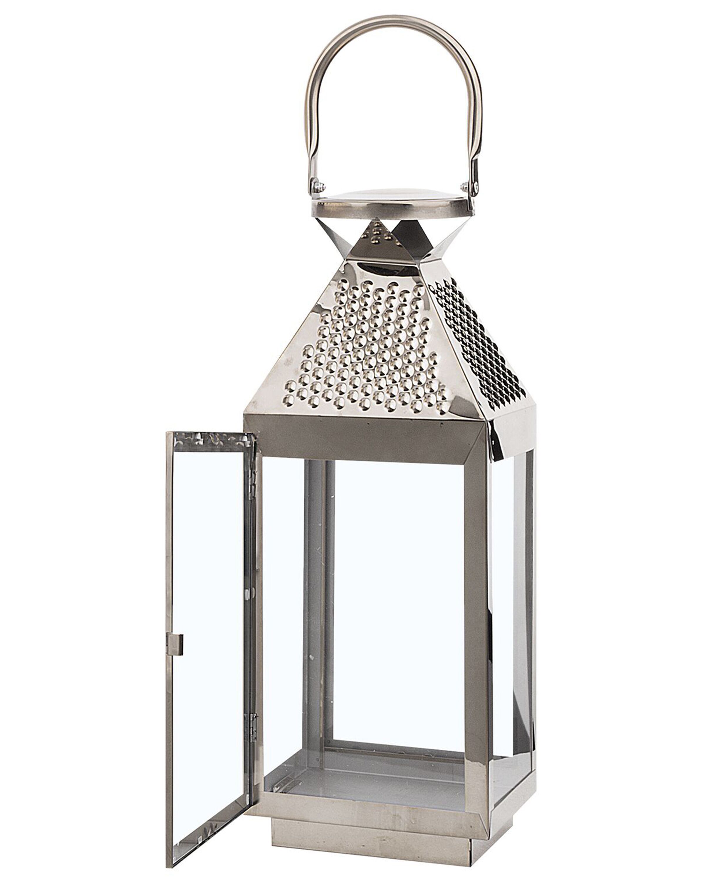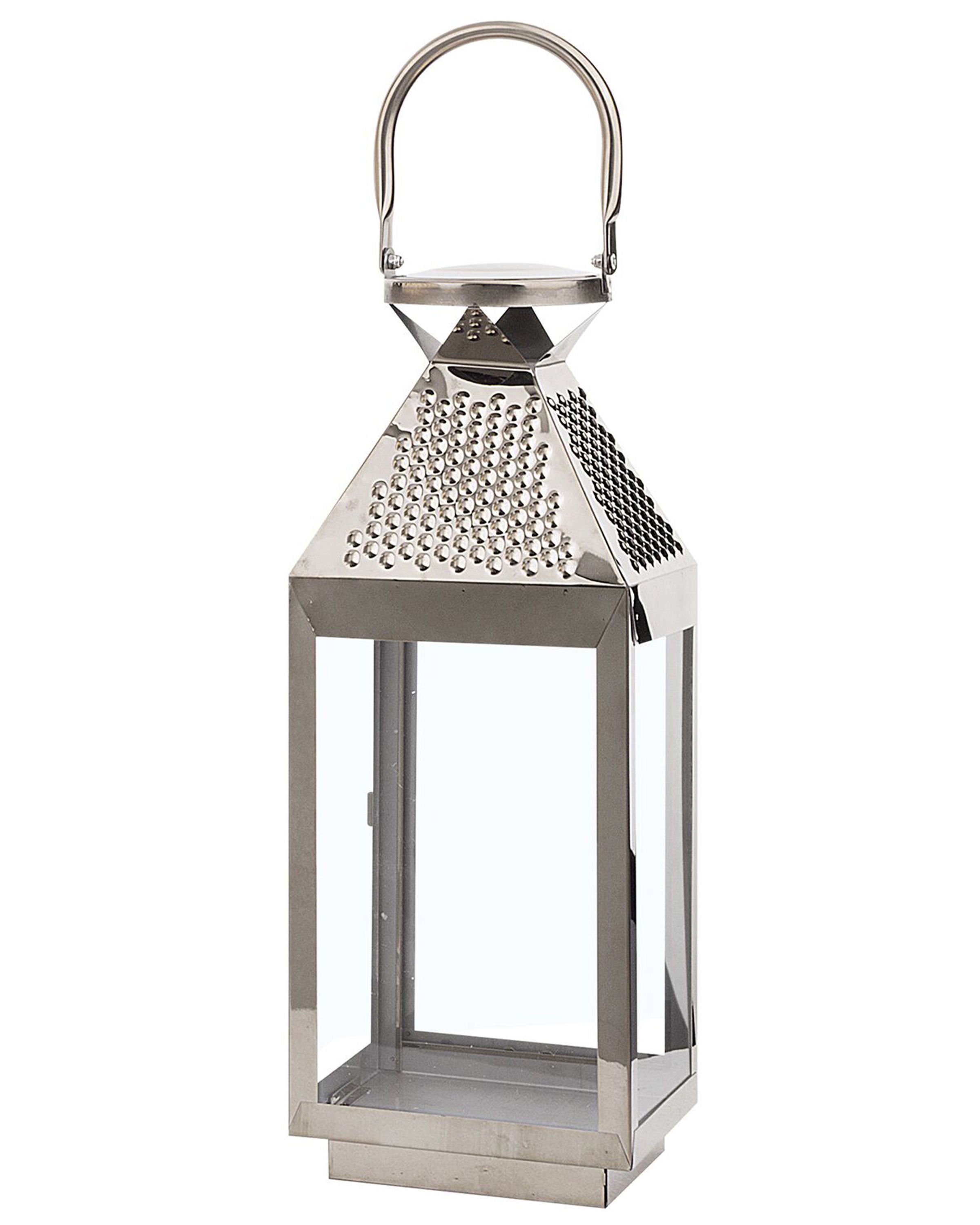 Lanterne argentée classique 40 cm. Inspirée par les formes industrielles, cette lanterne simple est sûre de devenir un élément audacieux dans n'importe quel environnement moderne et minimaliste. Fabriquée en acier inoxydable robuste et résistant, la pièce est dotée d'une poignée complémentaire qui souligne sa simplicité. Utilisez-la avec une bougie, des guirlandes lumineuses ou d'autres éléments de décor et créez une décoration unique en un clin d'œil.