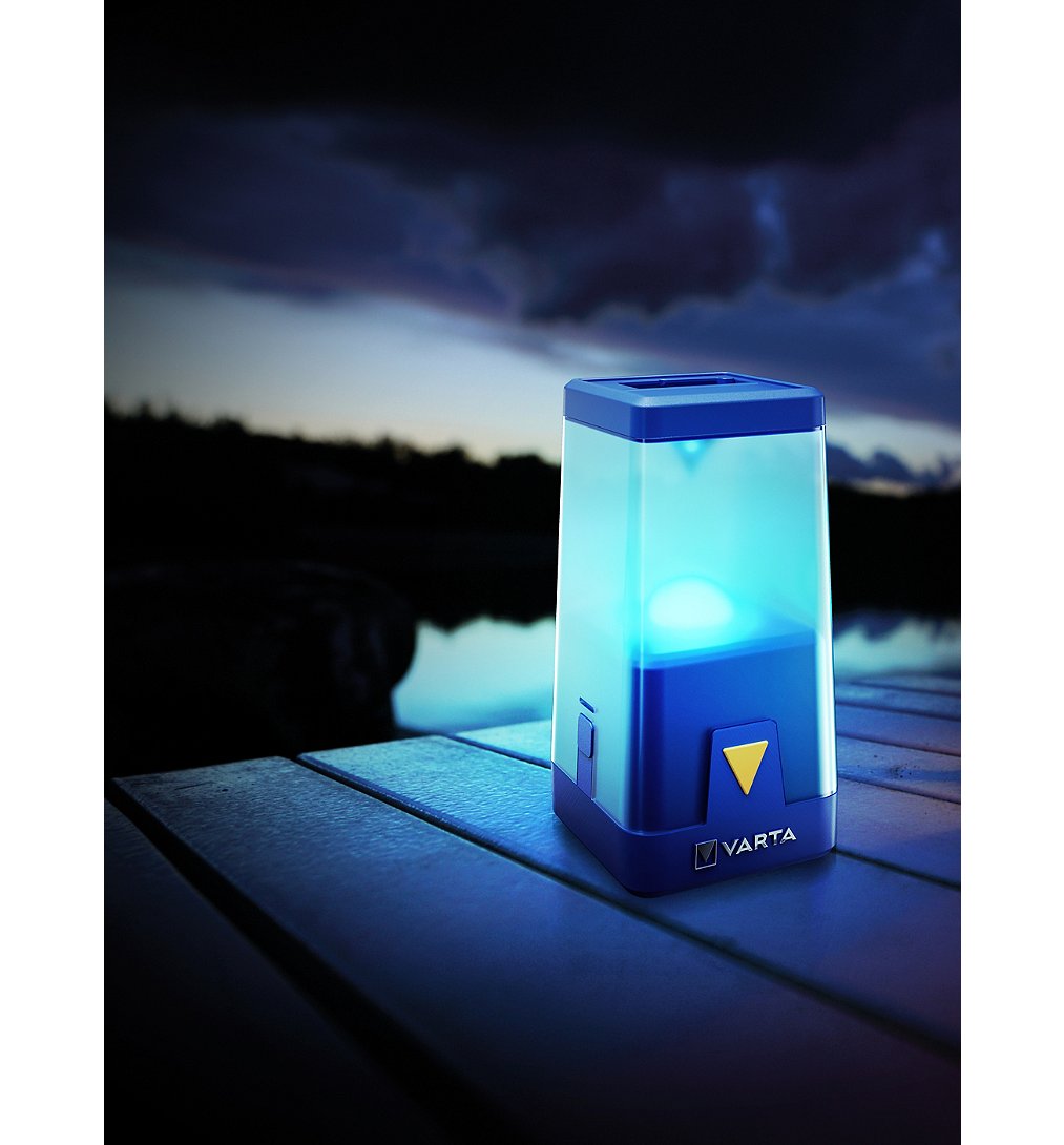 VARTA Outdoor Ambiance Lantern L20 6AA non incl. Lanterne avec LEDs hautes performances, au design VARTA unique comprenant une fonction dimmable et de multiples modes de couleurs (rouge, vert, bleu, jaune, magenta et cyan). Crochets supérieur et inférieur intégrés, et lentille amovible pour de multiples options de suspension et éclairage par le bas, direct. Intensité lumineuse jusqu'à 400 lm, autonomie 300h, portée du faisceau 16m