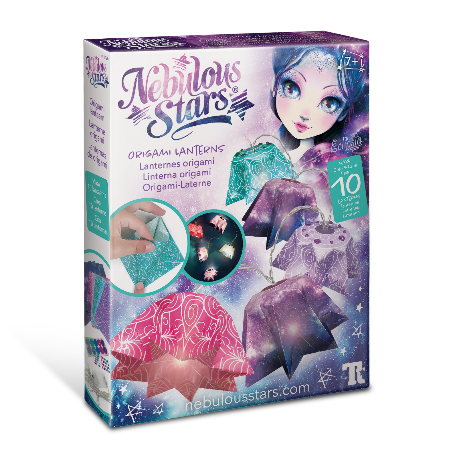 Fabriquez 10 lanternes en forme d'étoile en origami Guirlandes lumineuses à LED et à piles. 11 feuilles d'origami imprimées, 10 autocollants ronds et 60 autocollants en strass. Comprend également les instructions de couleur et l'histoire complète d'Eclipsia.