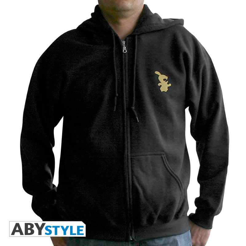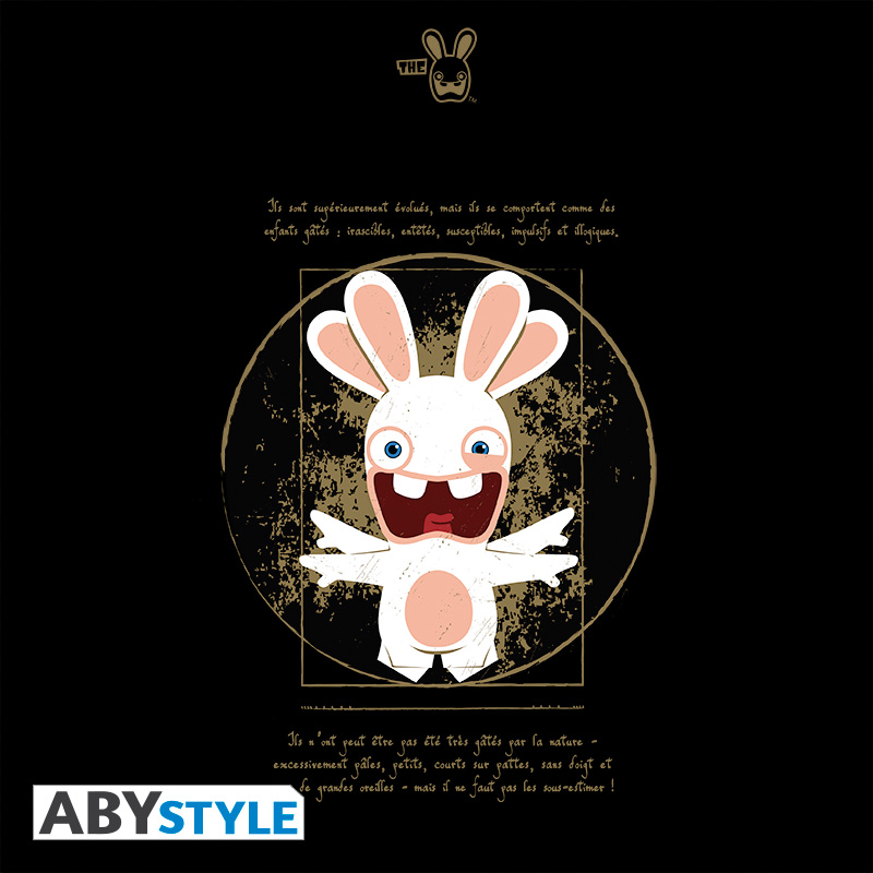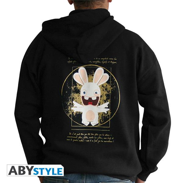 \"Ils sont supérieurement évolués, mais ils se comportent comme des enfants gâtés : irascibles, entêtés, susceptibles, impulsifs et illogiques\" telle est la nature des Lapins Crétins décrite par Léonard De Vinci lui-même sur ce sweat ABYstyle. Collector : ce visuel du Lapin Crétin « Vitruve » a été spécifiquement réalisé par Ubisoft pour ABYstyle ! - sweat-shirt zippé à capuche, poches kangourou, zip métal. Modèle homme. Disponible en 5 tailles: S, M, L, XL, XXL. - Sweat noir d'excellente qualité: 50% coton/ 50% polyester. 270gr.