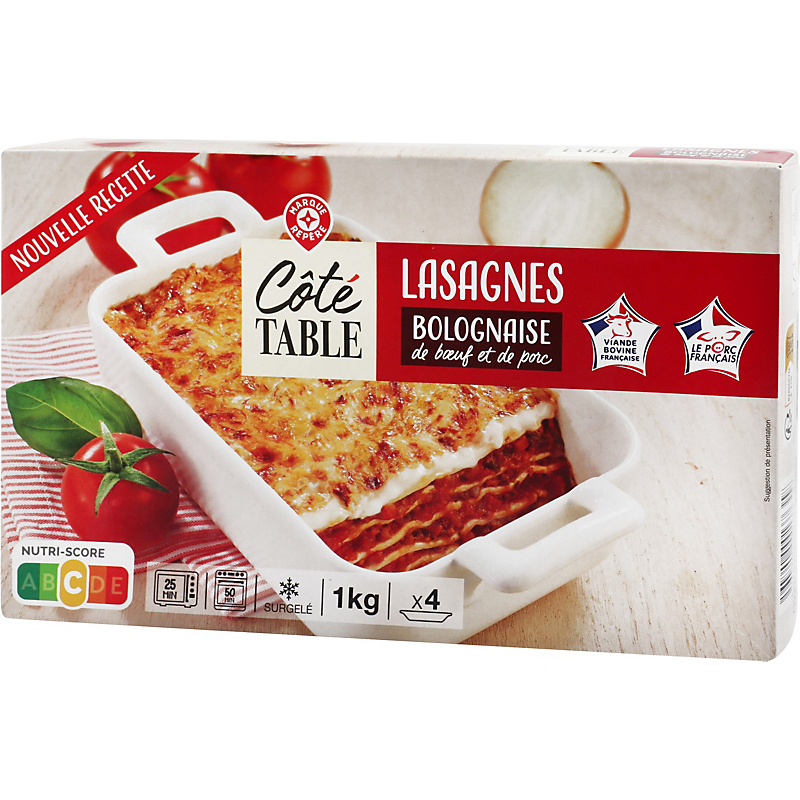 Lasagnes à la bolognaise de boeuf et de porc, surgelées COTE TABLE