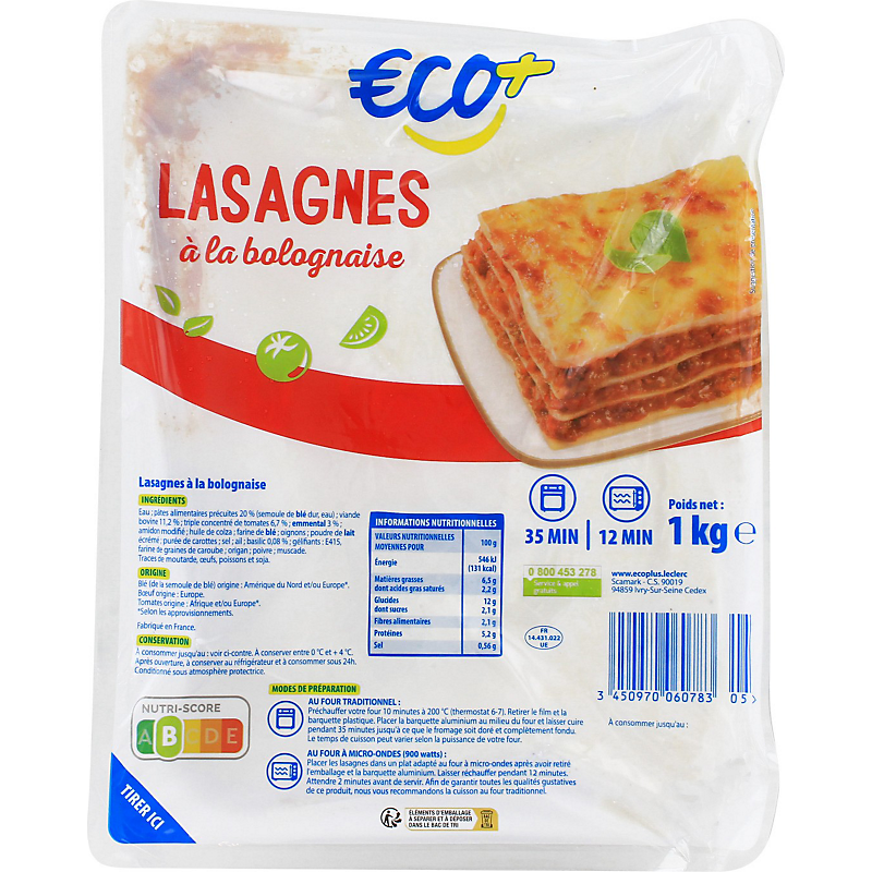 Lasagnes à la bolognaise ECO +