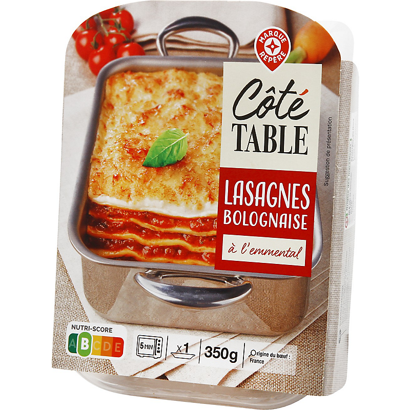 Pâtes alimentaires précuites type lasagnes à la bolognaise à la viande bovine, aromatisées COTE TABLE