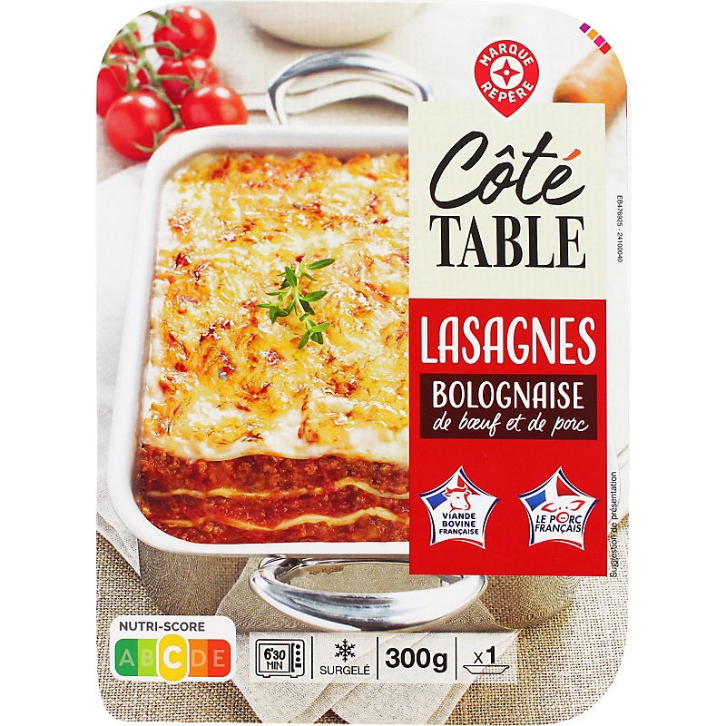 LASAGNES À LA BOLOGNAISE À LA VIANDE DE BOEUF ET PORC SURGELÉES COTE TABLE