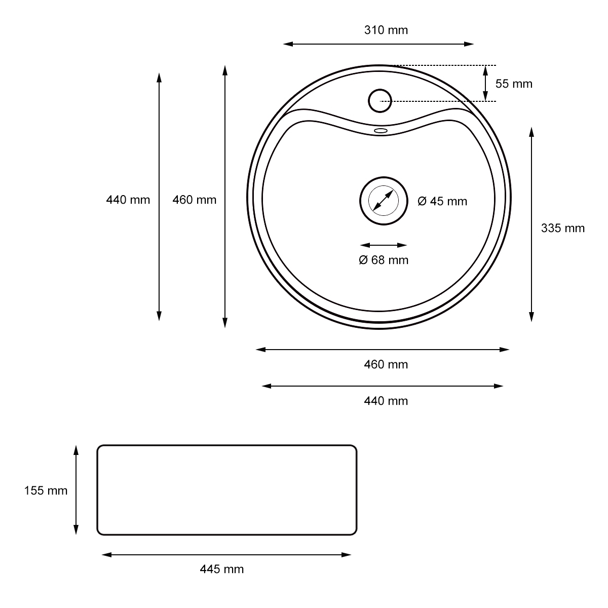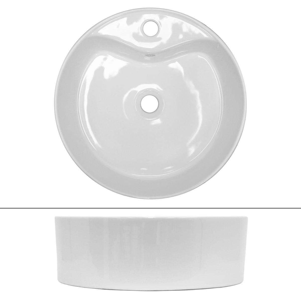 | Libellé | Lavabo salle de bain rond céramique blanc garniture de vidange Ø 460x460x155 mm |