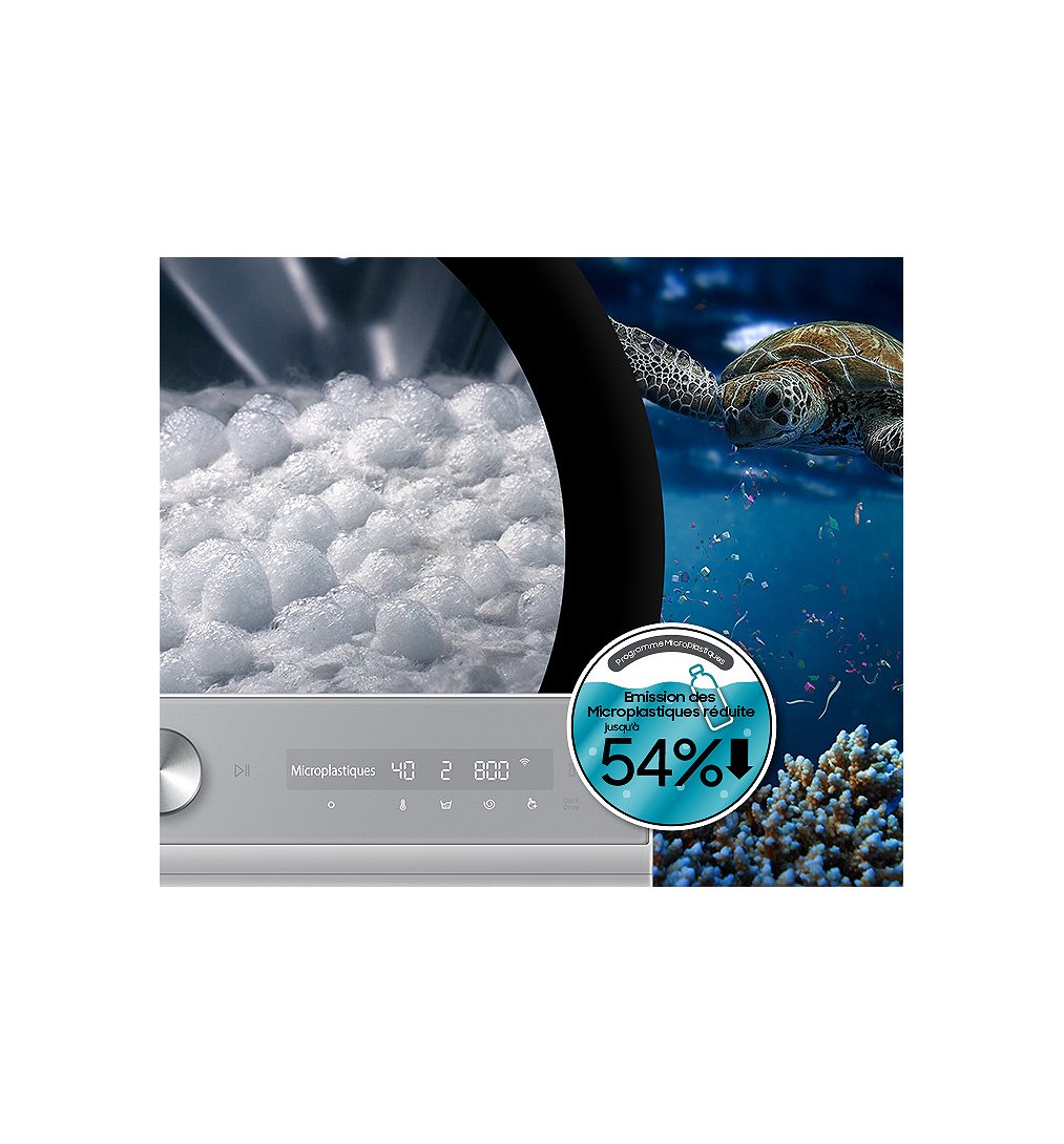 Capacité de 8kg , technologie ecobubble transforme la lessive en mousse ultra - perfomante même à basse température, SmartThings AI energy mode; surveillez et réduisez la consommation d'énergie de votre lave-linge jusqu'à 70% grâce à l'utilisation d'ecobubble, 1400trs/min