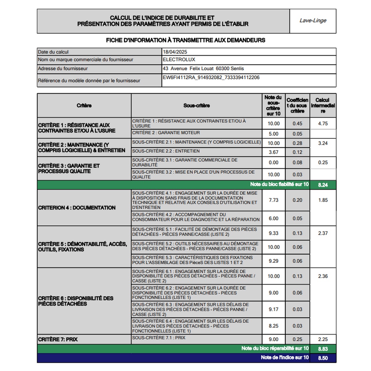| Libellé | Lave-linge frontal 10kg 1400 tours/min - EW6FI4112RA - electrolux |