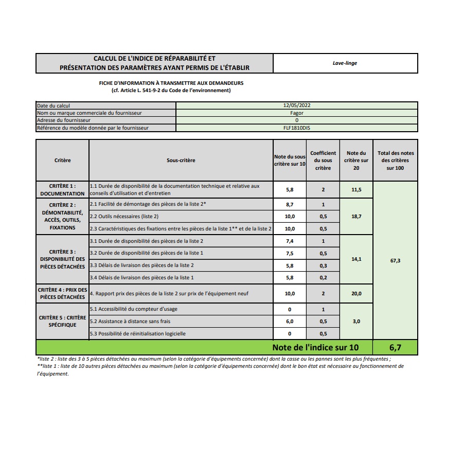 | Libellé | LAVE LINGE FRONTAL 18KG Fagor FLF1810DIDS |