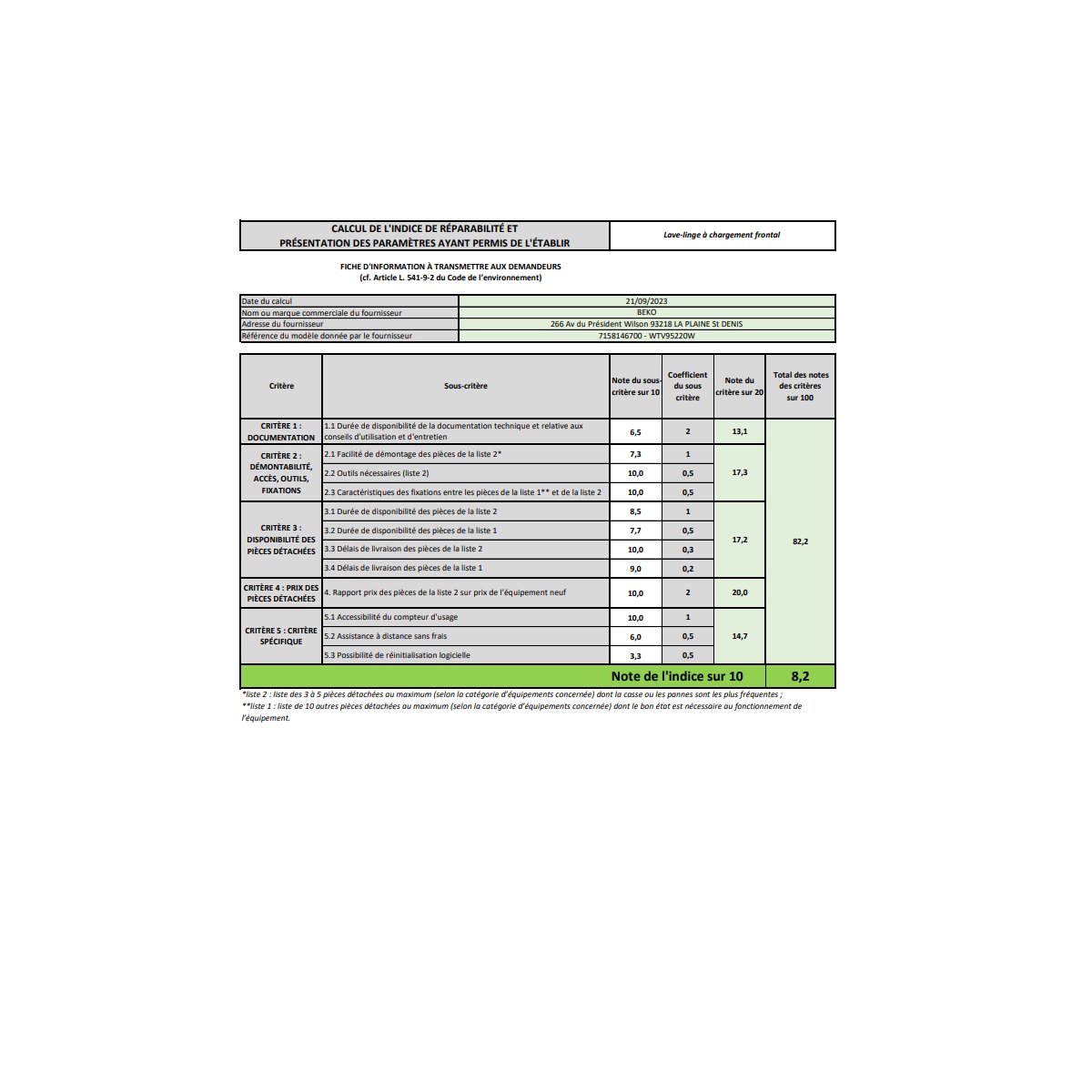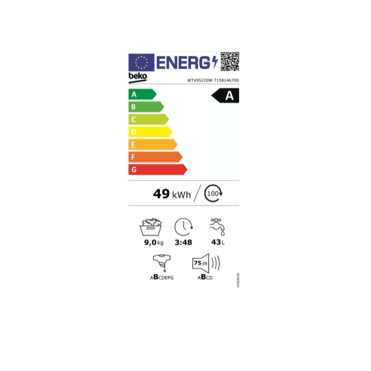 | Libellé | Lave-linge frontal 9kg 1400 tours/min - WTV95220W - beko |