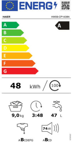 | Classe d'efficacité d'essorage (2021) | B |