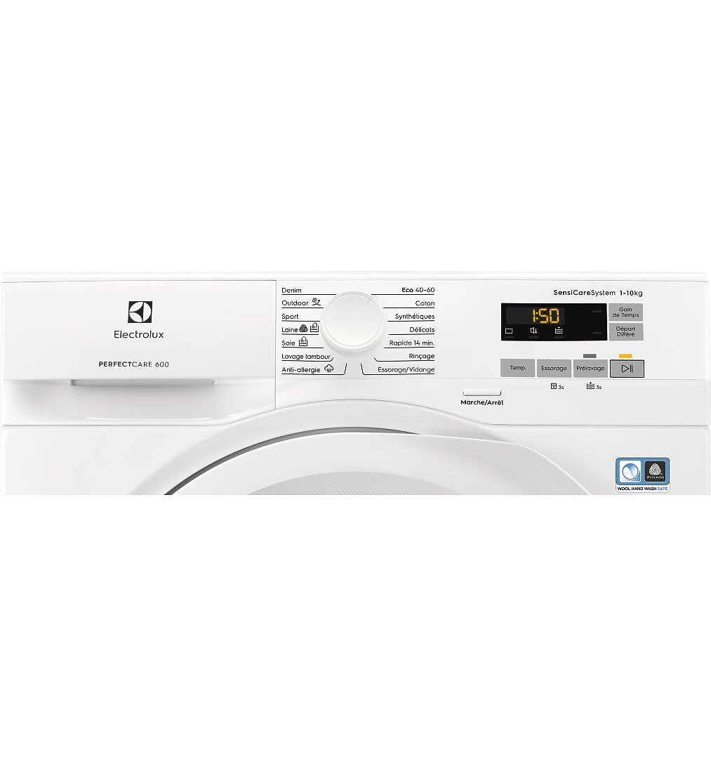 LAVE-LINGE HUBLOT - PerfectCare 600 - Capacité maxi du tambour (kg):10 - Vitesse d`essorage maxi commerciale (tr/min):1400 - Classe énergétique lavage:A - Ecran LCD - Hublot XXXL Blanc - Boîte à produits flexible DuoDose poudre/liquide - PROGRAMMES: Eco 40-60, coton, synthétiques, délicats, rapide 14 min., anti-allergie, lavage tambour, soie, laine, sport, outdoor, denim - Options : départ différé, Gain de temps - Certifications Woolmark® Blue - Moteur Eco Inverter - Temps ajusté en 30` et alerte de surcharge - Sécurité enfants - Débitmètre - Indice d’efficacité de lavage:1.031 - Consommation d`énergie pour 100 cycles (kWh):51 - Durée du cycle Eco 40-60 (h:mn):3:50 - Eau (L):52 - Classe d`efficacité d`essorage:B - Classe d`efficacité sonore:B - Niveau sonore (dB):76 - Fréquence (Hz) / Tension (V):50/230 - Indice de réparabilité:8.5