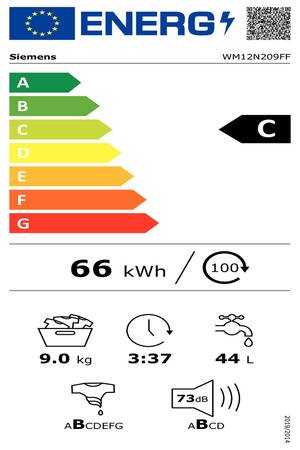 Capacité 9kg (tambour 63 L) - Classe énergétique C.