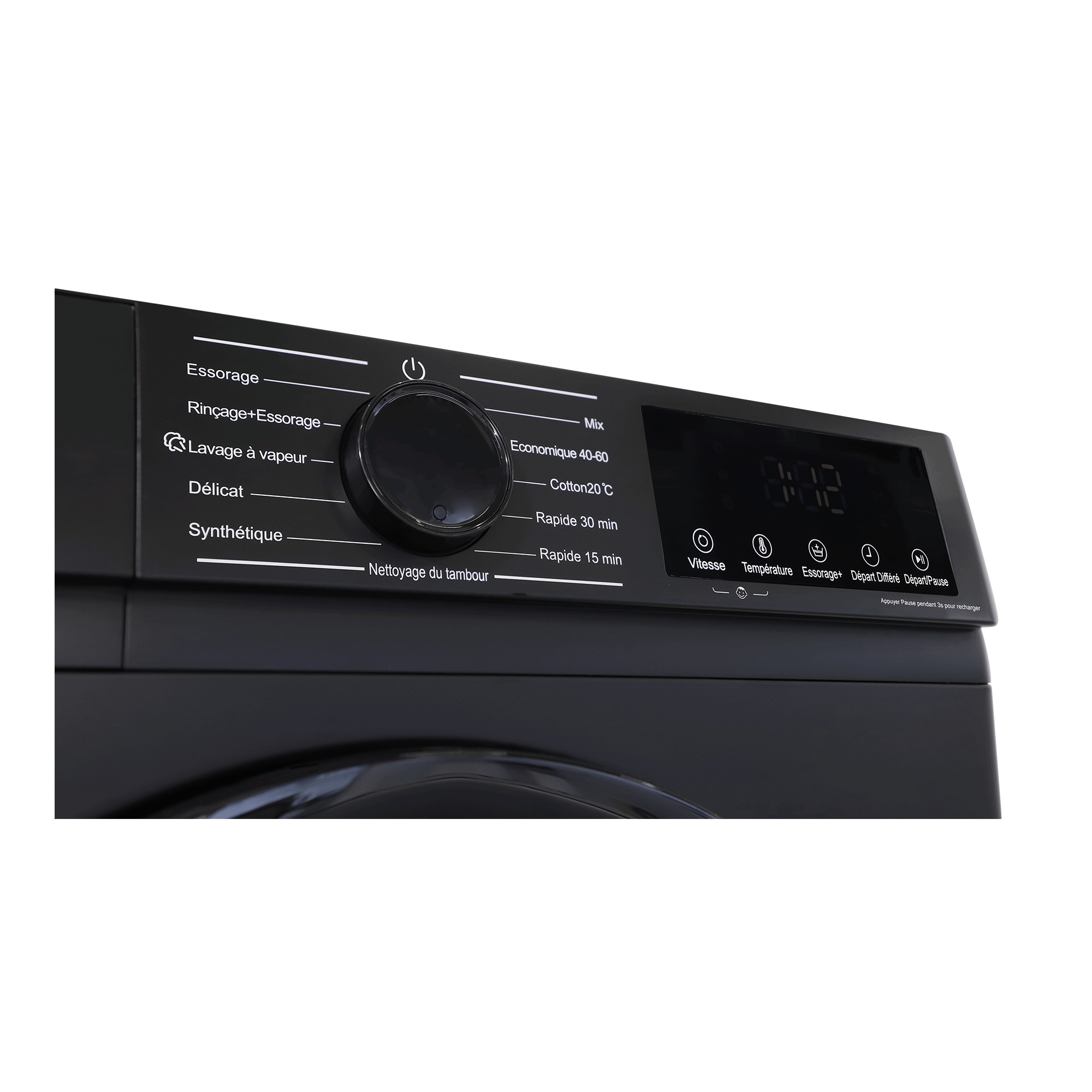 - 11 Programmes de lavage : Mix, Rapide 30min, Rapide 15min, Chemise, Délicat, Lavage à vapeur, Synthétique, Eco 40-60, Coton 20°C, Rinçage + Essorage, Essorage