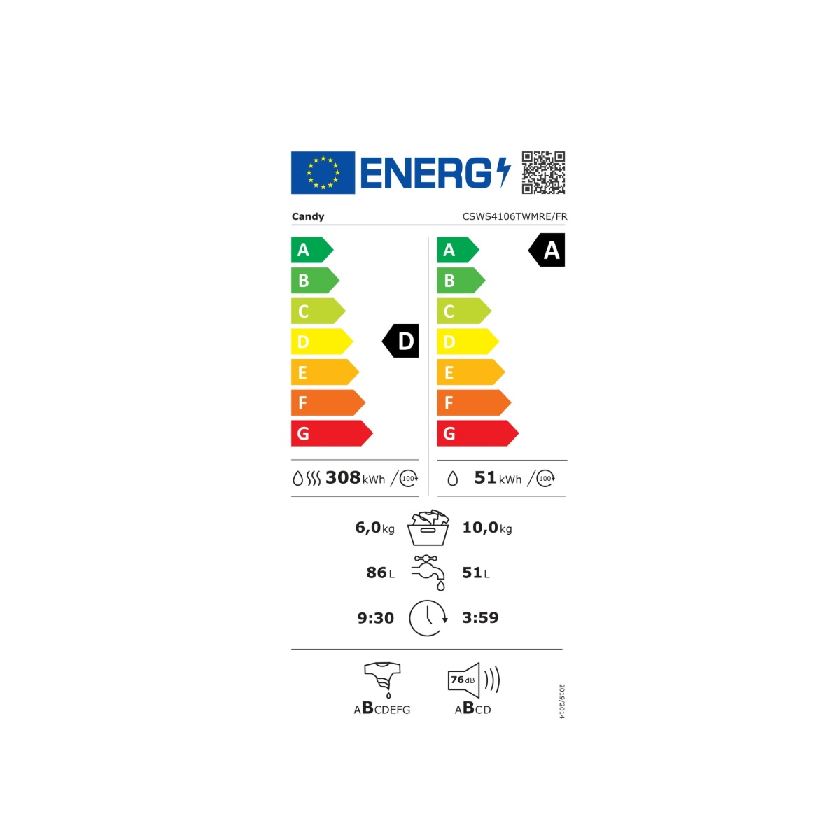 | Libellé | Lave-linge séchant frontal 10/6 kg 1400 tours/min - CSWS4106TWMRE/FR - Candy |