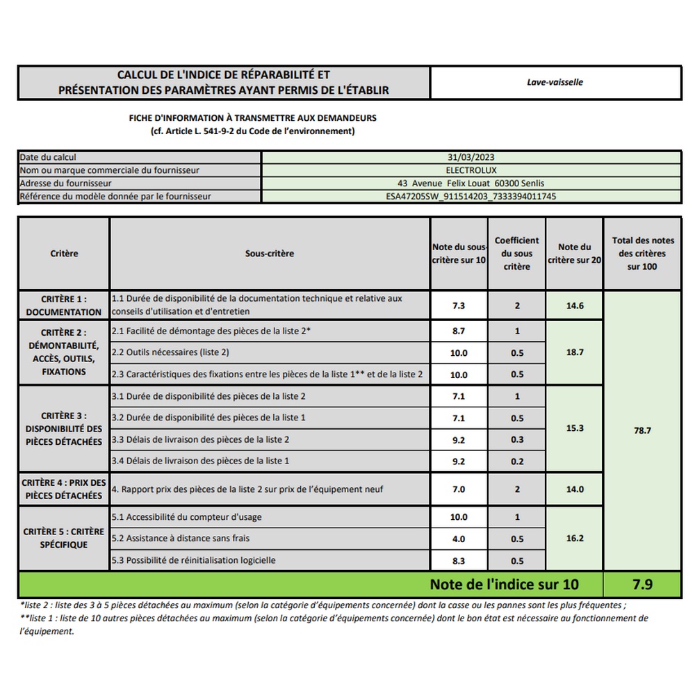 | Libellé | LAVE VAISS 60 CM 13 et + CVTS Electrolux ESA47205SW |