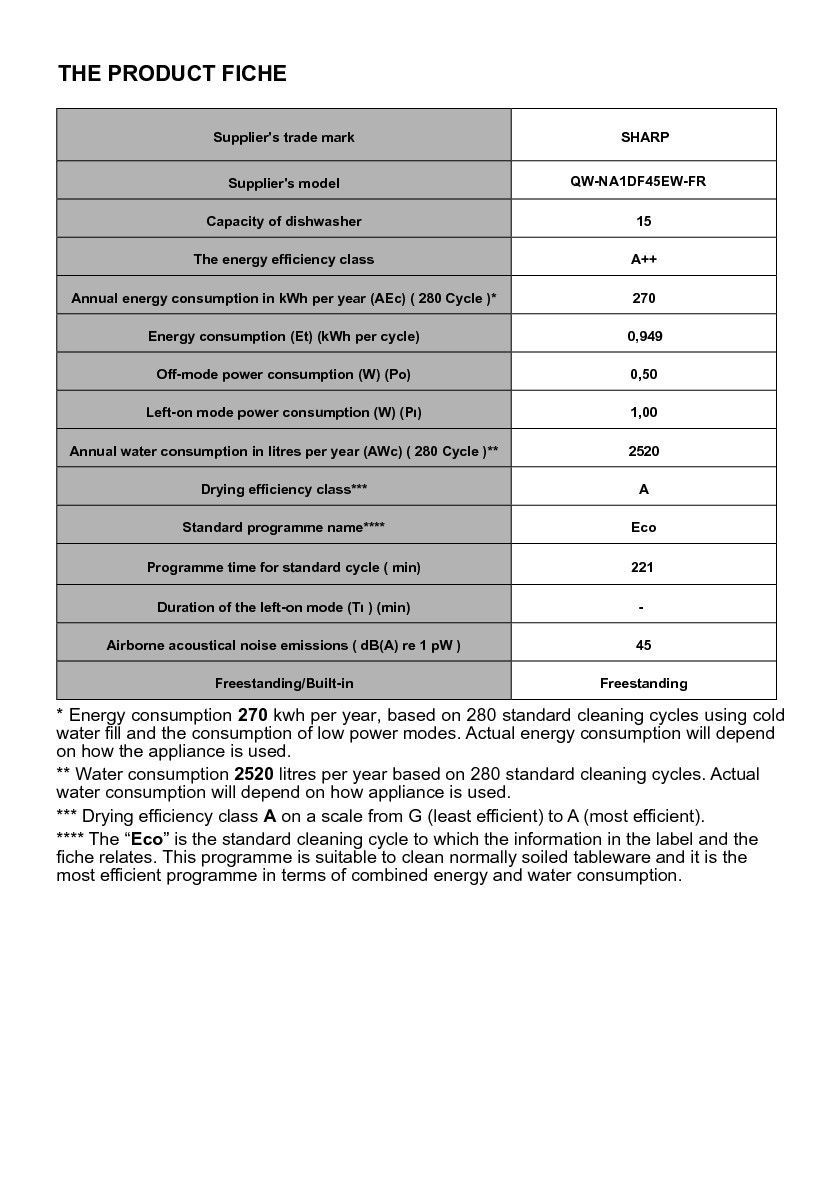 | Libellé | Lave-vaisselle 15 couverts Blanc E Sharp QW-NA1DF45EW |