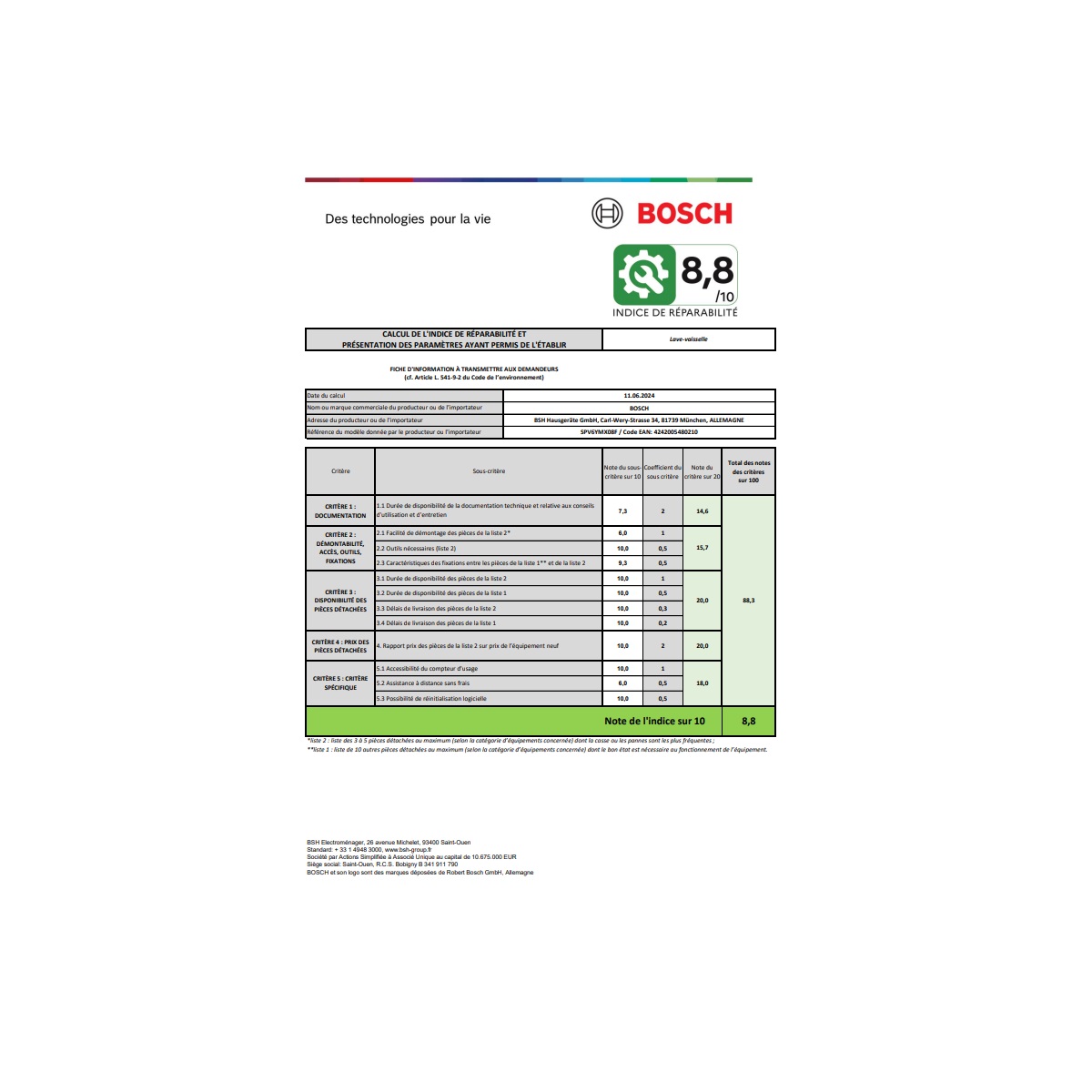 AquaStop : garantie Bosch en cas de dégât des eaux pour toute la durée de vie de l'appareil.