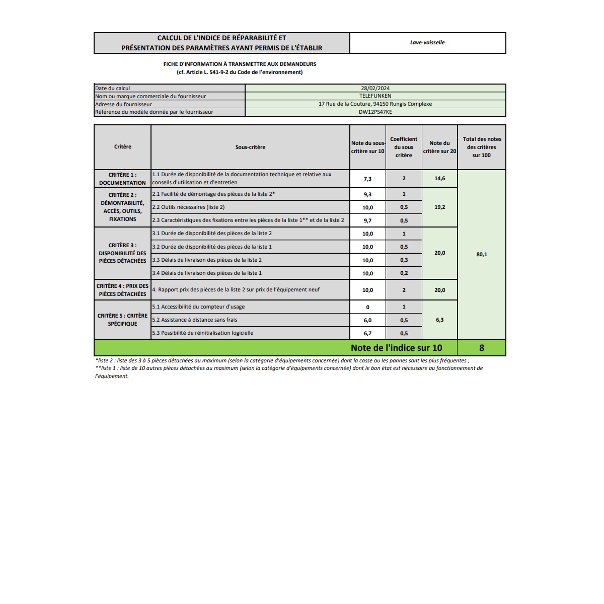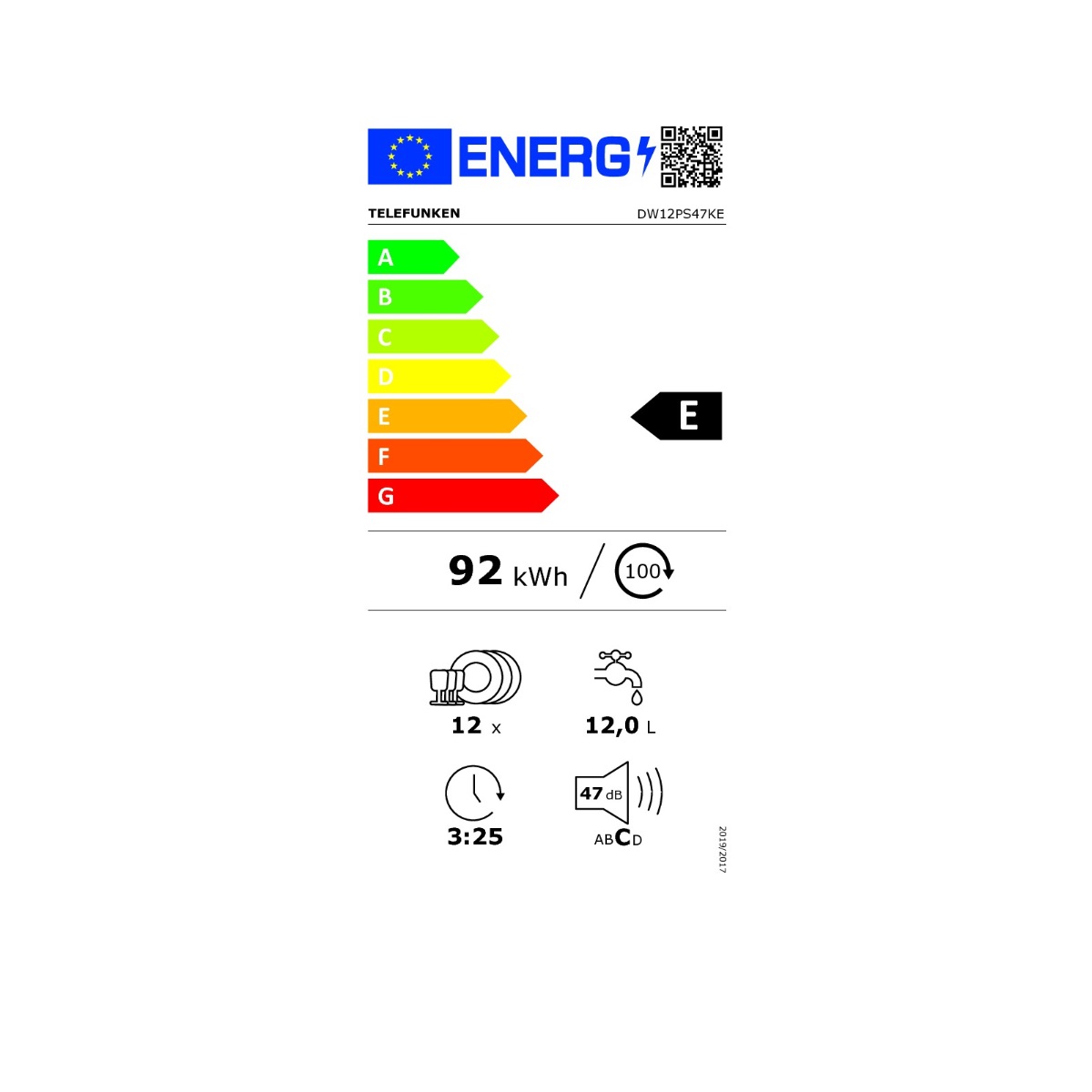 Libellé Lave-vaisselle 60cm 12couverts 47db - DW12PS47KE - telefunken